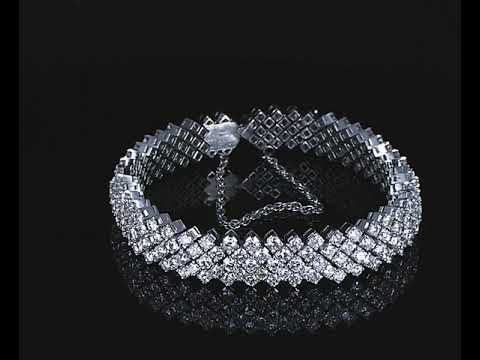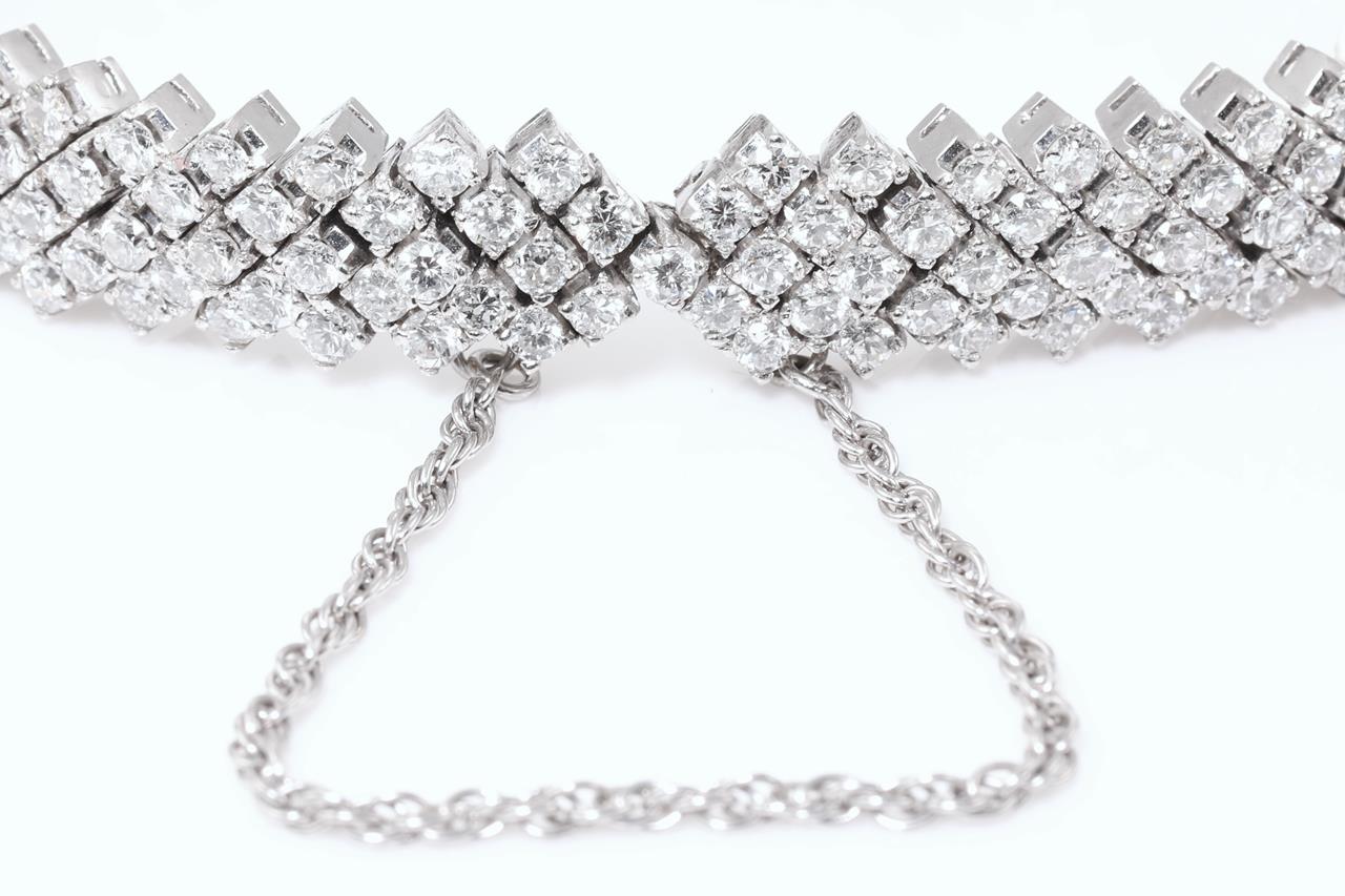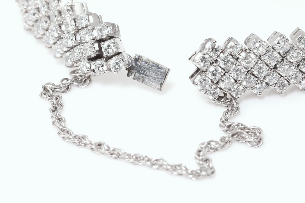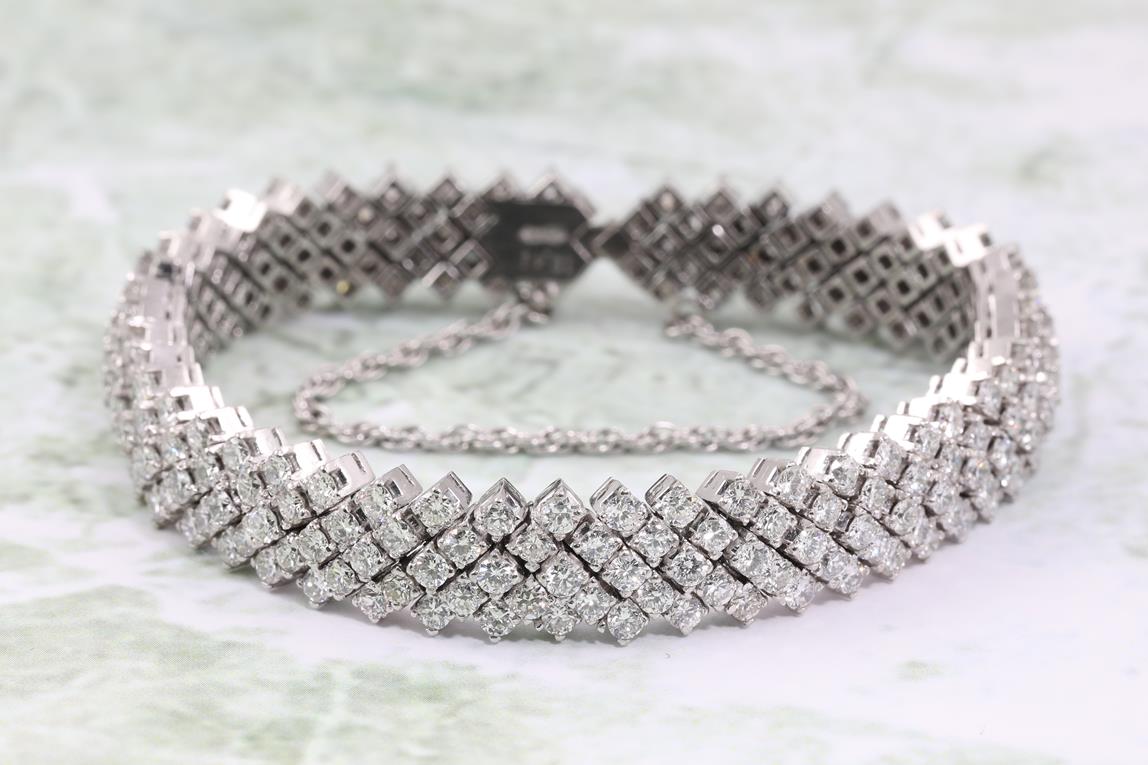 Diamond bracelet with round Diamonds totalling 10.41cts (Estimated grading: G-H SI). Platinum with safety chain. Length: 17cm. Weight: 57.2g. With certificate #414496. (Pre-owned)