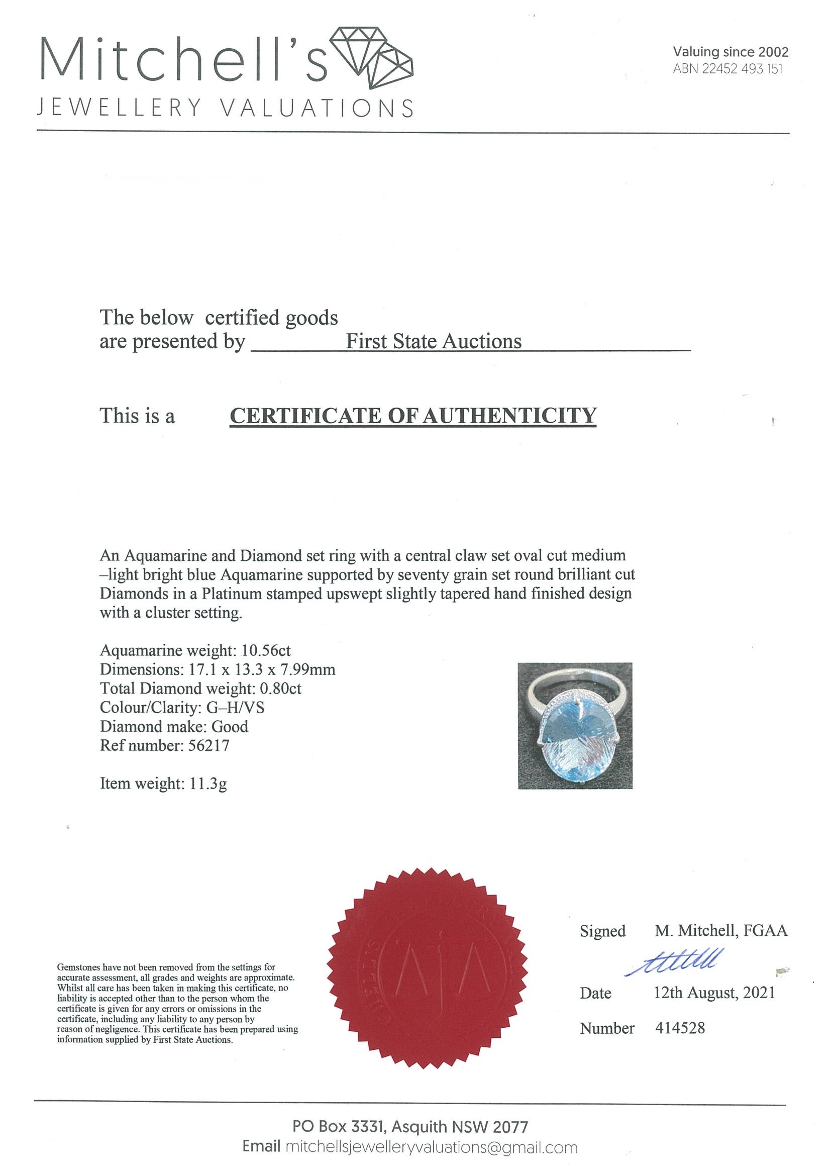 10.56ct Aquamarine and Diamond Ring | First State Auctions