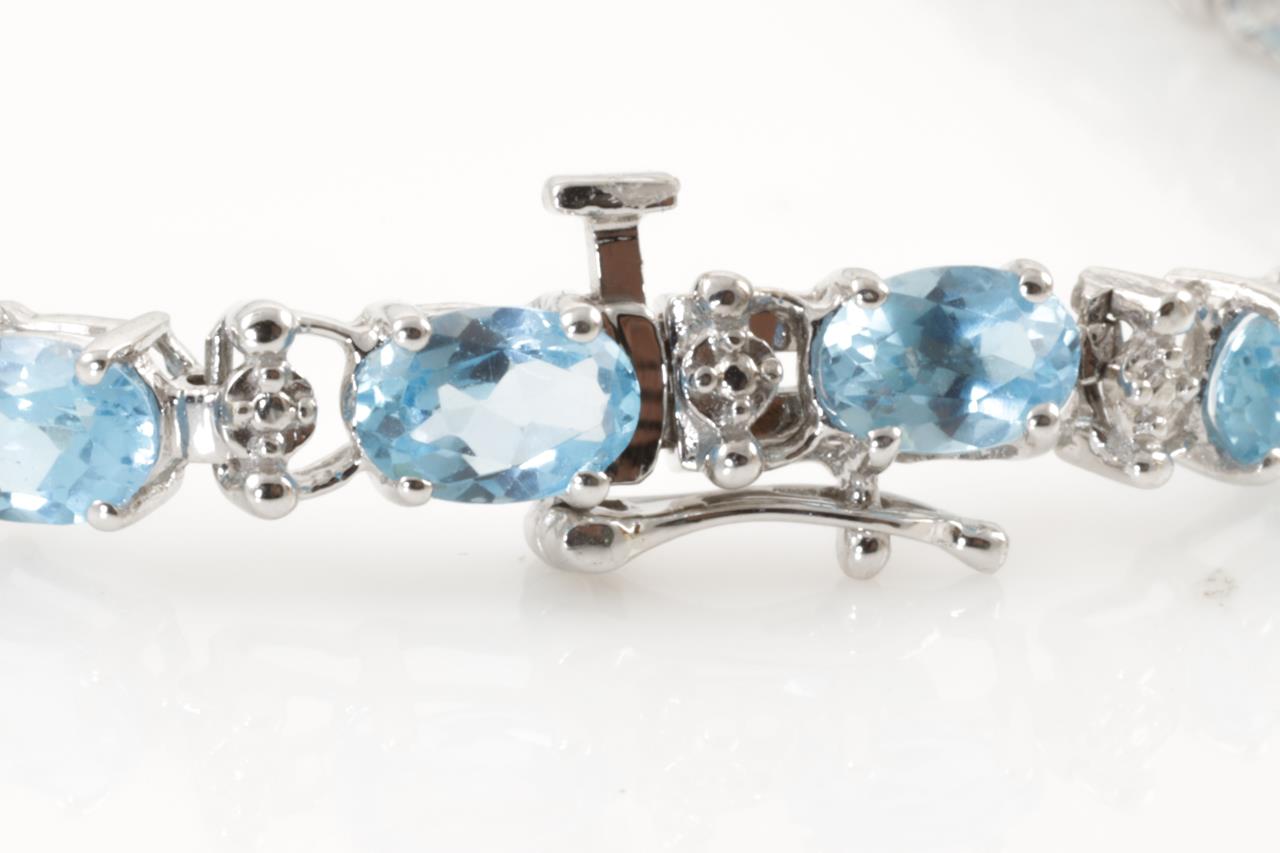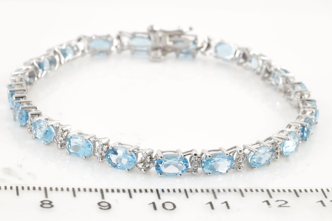 Topaz and Diamond Bracelet with oval cut blue Topaz totalling approximately 10.59cts and round Diamonds totalling approximately 0.01cts. 10ct white gold. Length 18.5cm. Weight 8.1g. (Pre-owned)