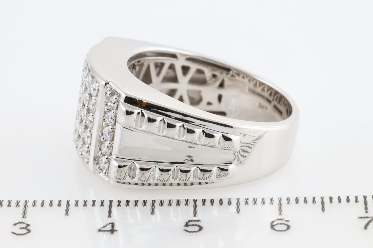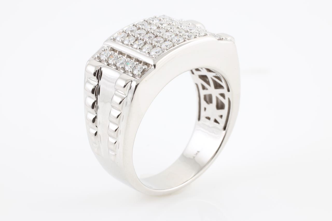 Diamond Mens ring with round Diamonds totalling 1.05cts (Estimated grading: G-H SI). 14ct white gold. Ring size V. Weight: 14.2g (New)
