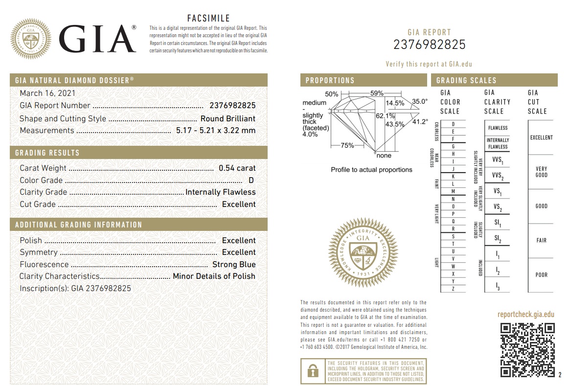 Diamond stud earrings with 2 round brilliant cut Diamonds totalling 1.05cts (both with GIA summary reports graded as D Internally Flawless #2376982825, 2367914467). 18ct gold. Weight: 1.6g. (New)