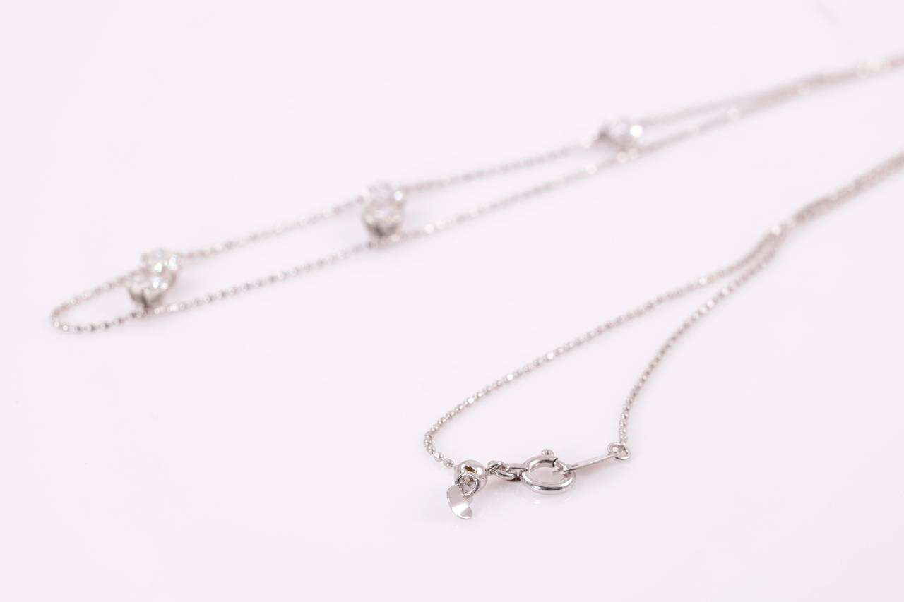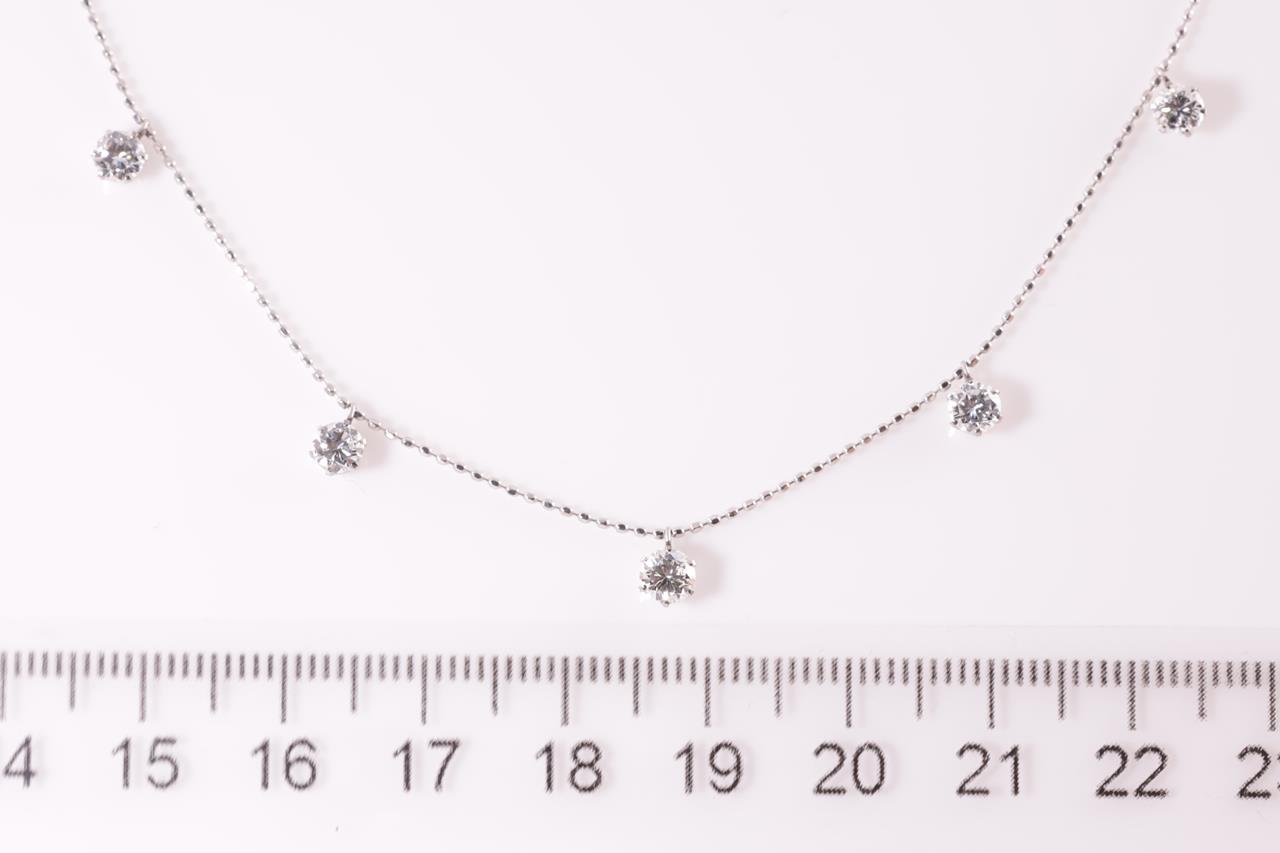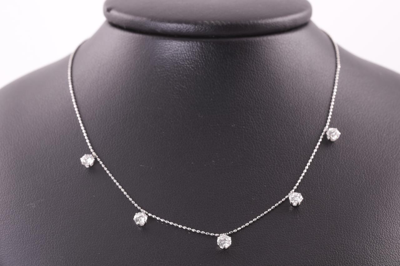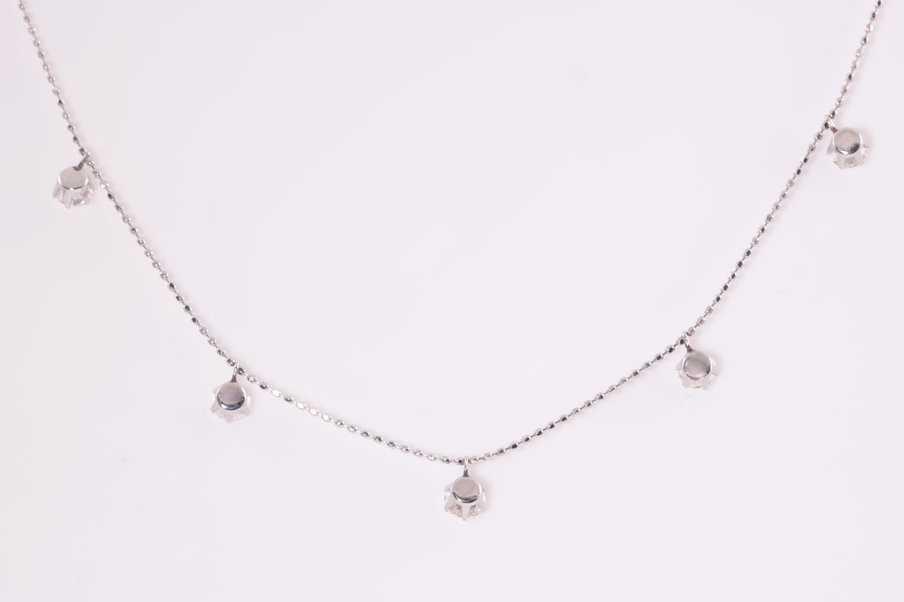 Diamond Necklace with 5 round Diamonds totalling 1.06cts (Estimated grading: H SI). Platinum with 45cm adjustable chain. Weight: 2.6g (Pre-owned)