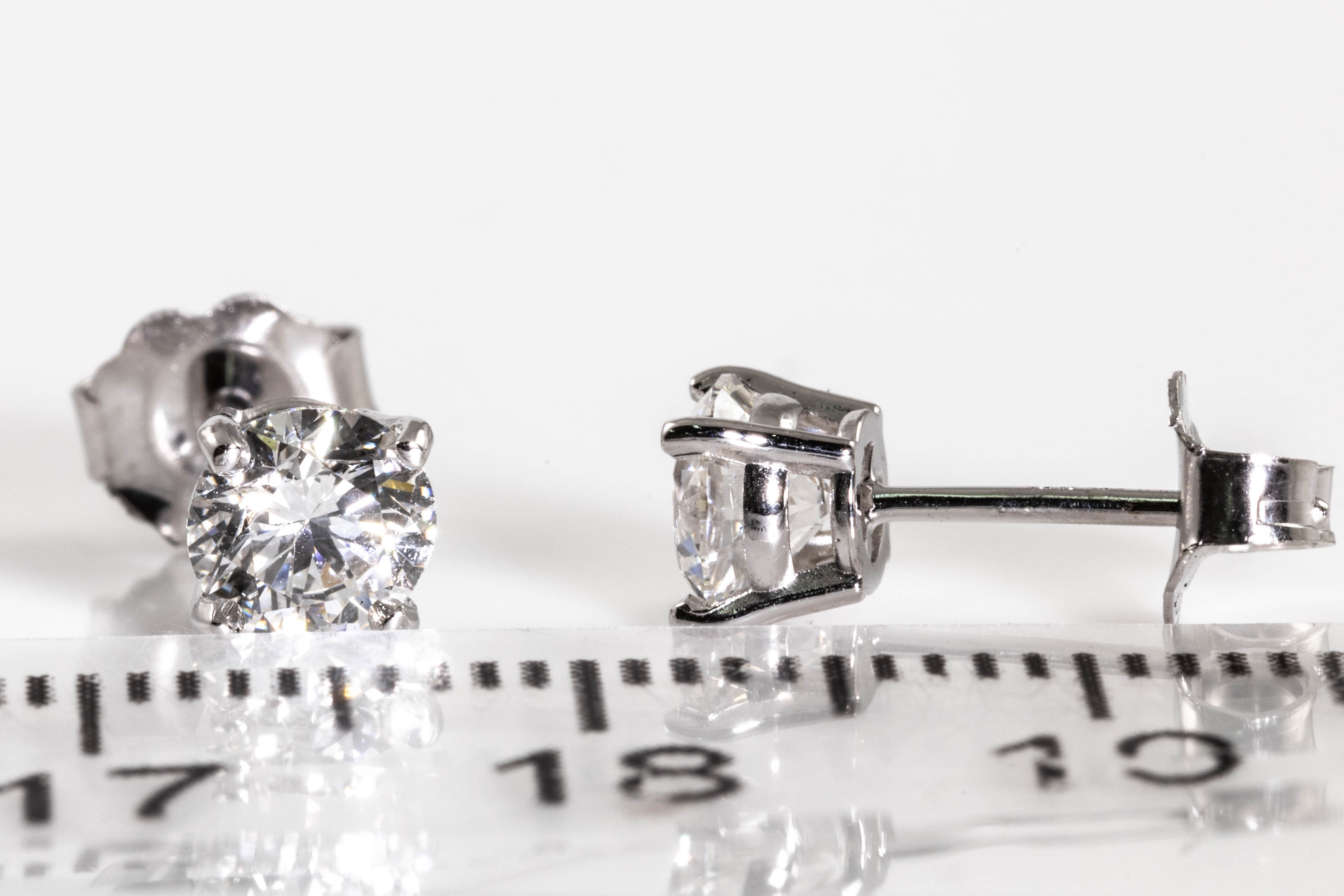 Diamond stud earrings with 2 round brilliant cut Diamonds totalling 1.06cts (both with GIA summary reports graded as E VVS2 #1393384982, 7406338458). 18ct white gold. Weight:1.1g. (New)