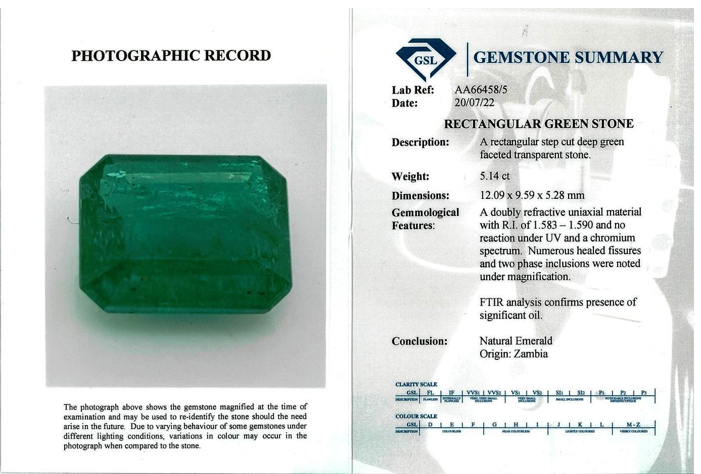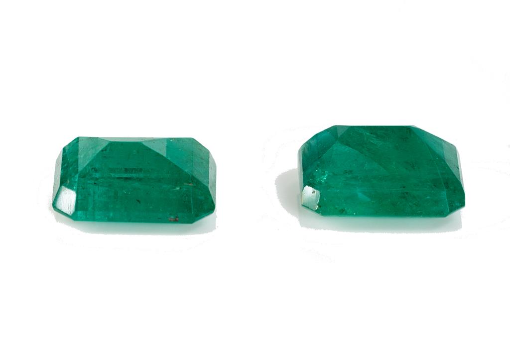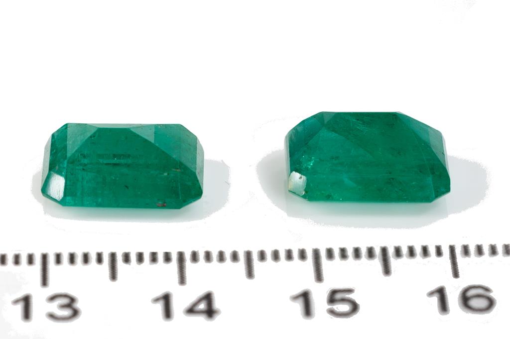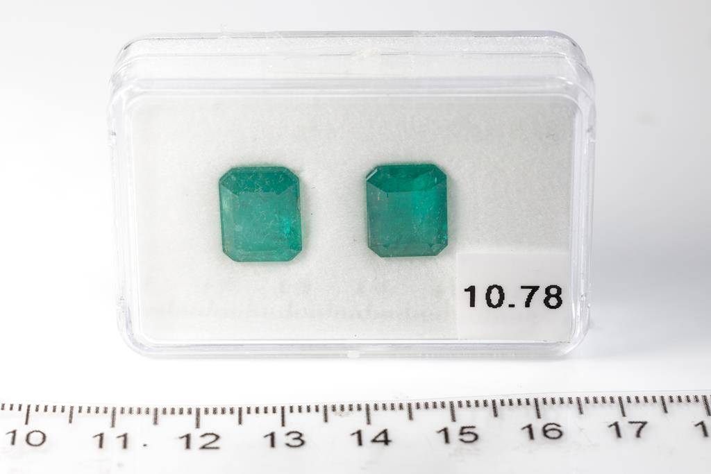 A loose pair of emerald cut Emeralds totalling 10.78cts (both with GSL summary reports #AA66458/6, AA66458/5). (As new)