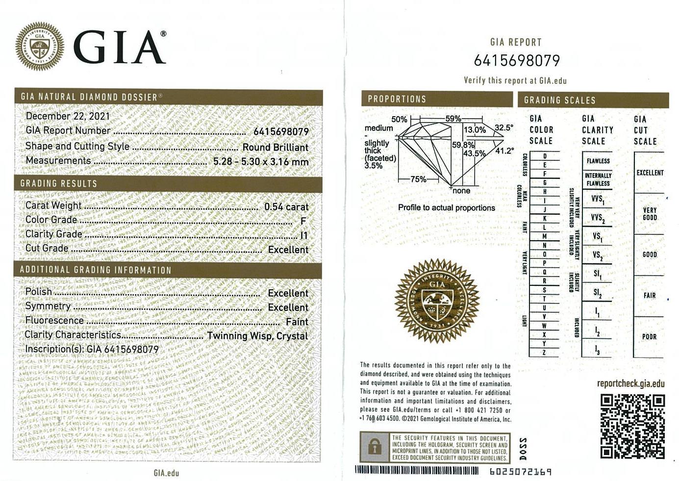 Diamond stud earrings with 2 round brilliant cut Diamonds totalling 1.07cts (both with GIA summary reports graded as F P1#6415698079, 6415493610). 18ct white gold. Weight: 1.6g. (New)