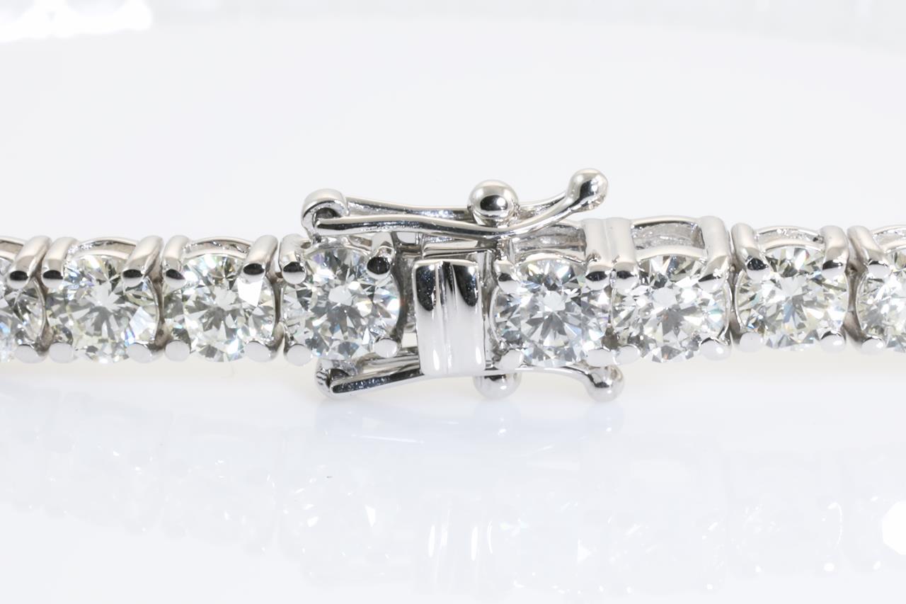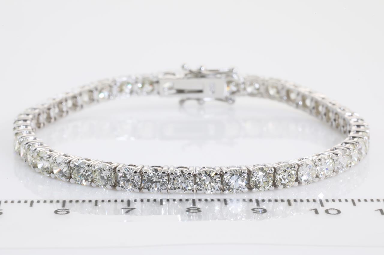 Diamond tennis bracelet with 44 round Diamonds totalling 10.87cts (Estimated grading: I-J SI). 18ct white gold. Length: 18.5cm. Weight: 12.9g With certificate #414038. (New)