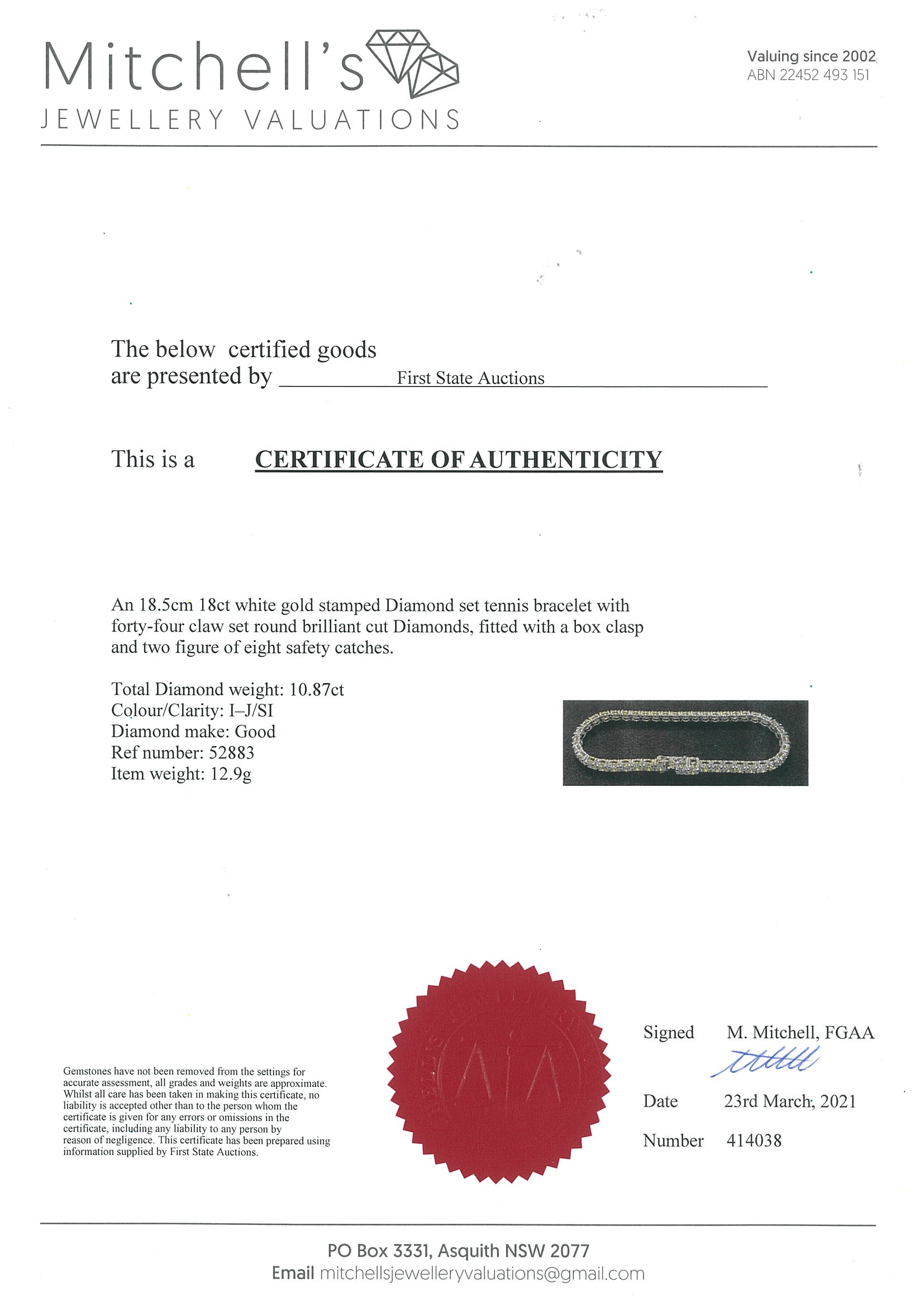 10.87ct Diamond Tennis Bracelet | First State Auctions