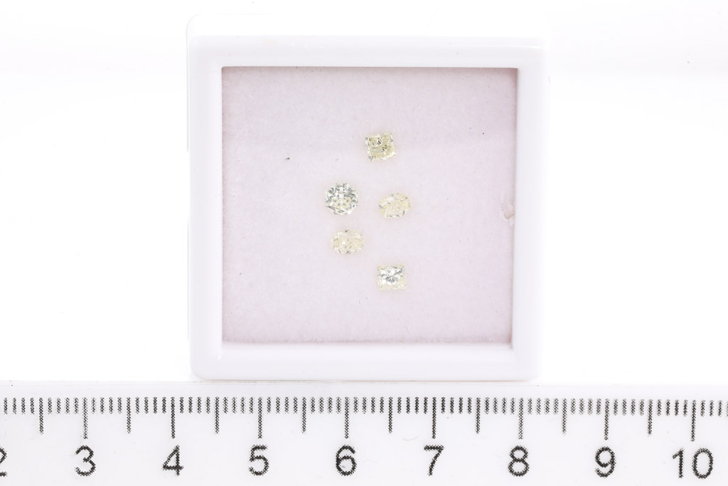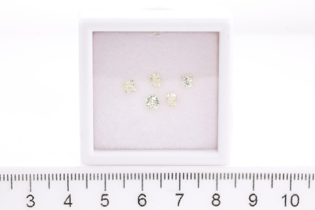 A loose parcel of 5 mixed shape Diamonds (including 2 x Princess, 2 x oval cut and 1 x hexagonal cut) totalling 1.08cts (Estimated grading: Natural Light Yellow VS-SI). (New)