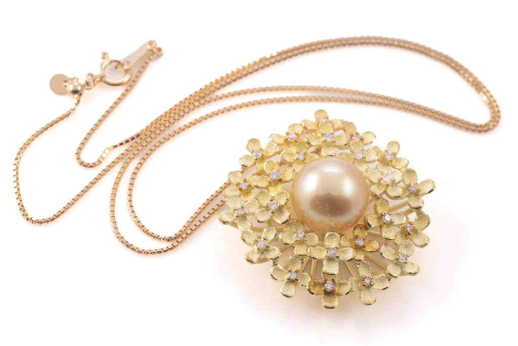 10.8mm Golden Pearl and Diamond Pendant | First State Auctions