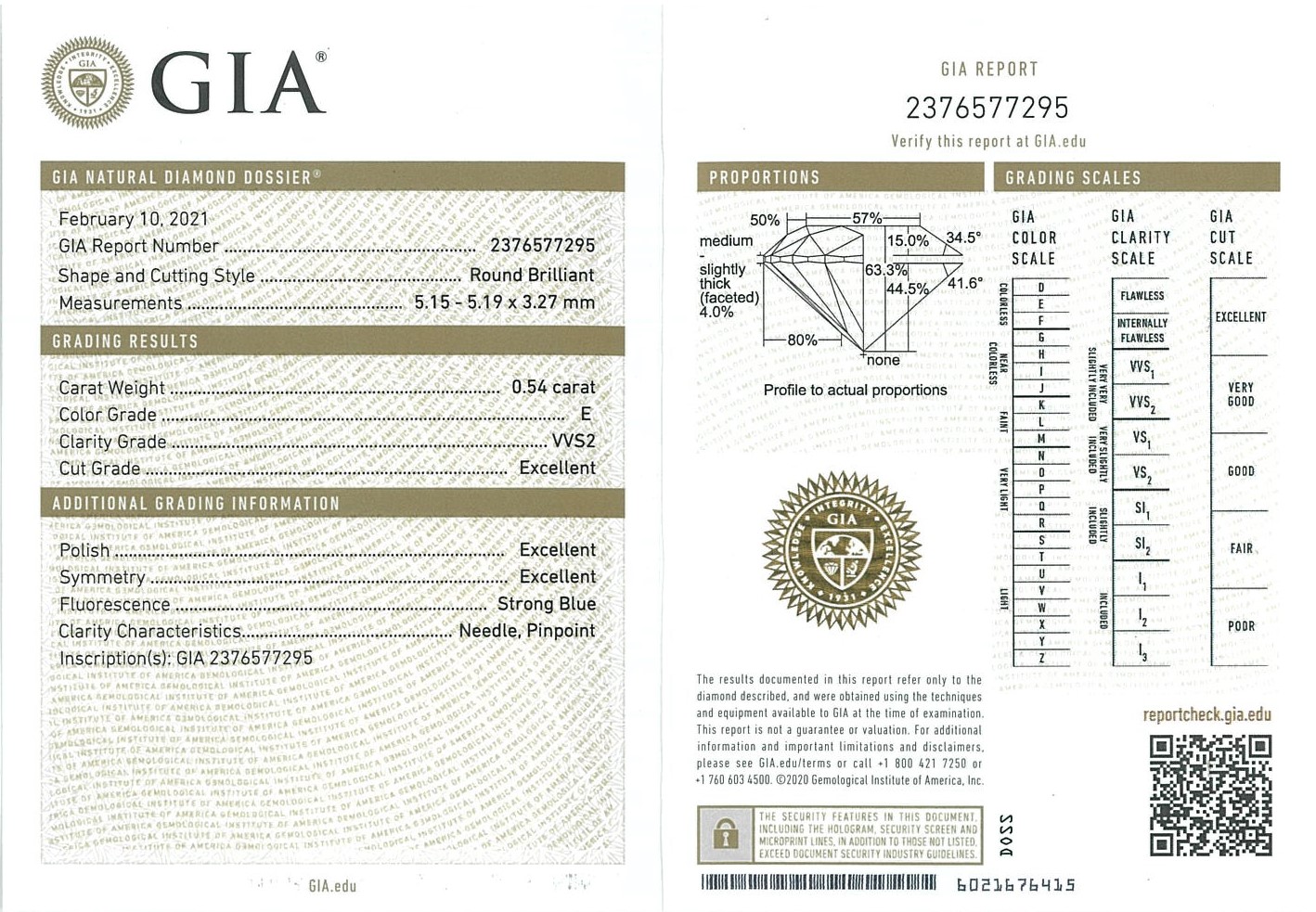 A loose pair of Round Brilliant Cut Diamonds totalling 1.09cts (with GIA summary reports both graded as E VVS2 #2376755338, 2376577295). (New)