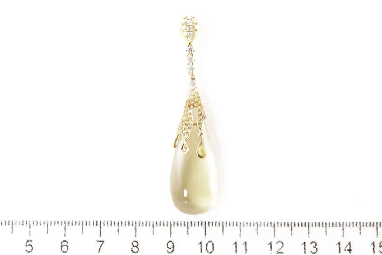 Citrine and Diamond drop pendant with Citrine of approximately 11.00ct and round Diamonds totalling approximately 0.35cts (Estimated grading: H SI). 18ct yellow gold. Weight 3g. (Pre-owned)
