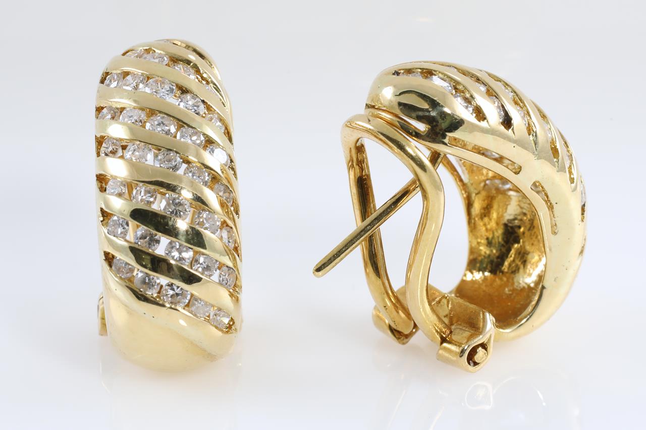 Diamond clip-on earrings with round Diamonds totalling approximately 1.10cts (Estimated grading: H-I P1). 18ct yellow gold. (Pre-owned)