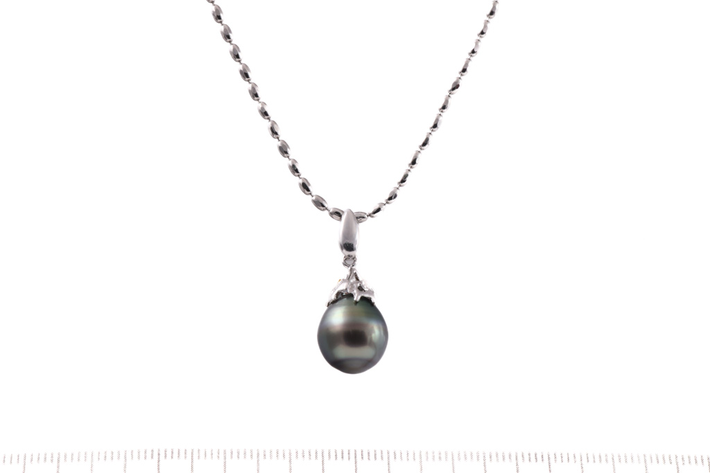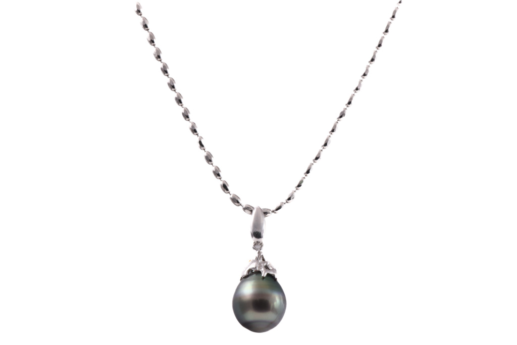 Tahitian Pearl pendant with drop shape Tahitian Pearl of 11.0mm. Platinum-900 with 49.5cm platinum-850 chain. Weight: 10.8g. (Pre-owned)