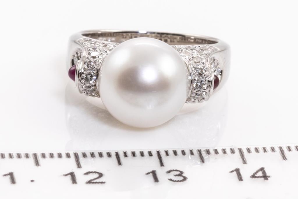 11.2mm Pearl, Ruby and Diamond Ring