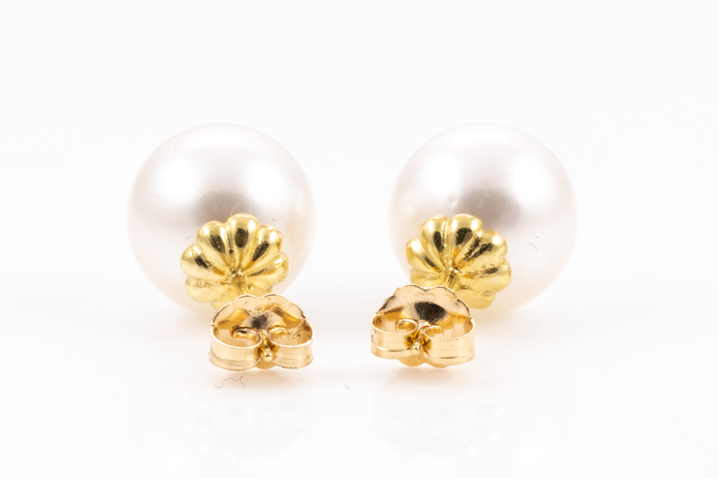 Pearl Studs with South Sea Pearls of 11.3mm. 18ct yellow gold. Weight 5.4g. (New)