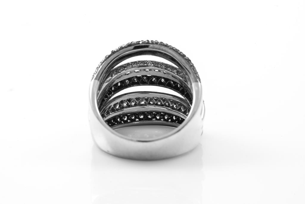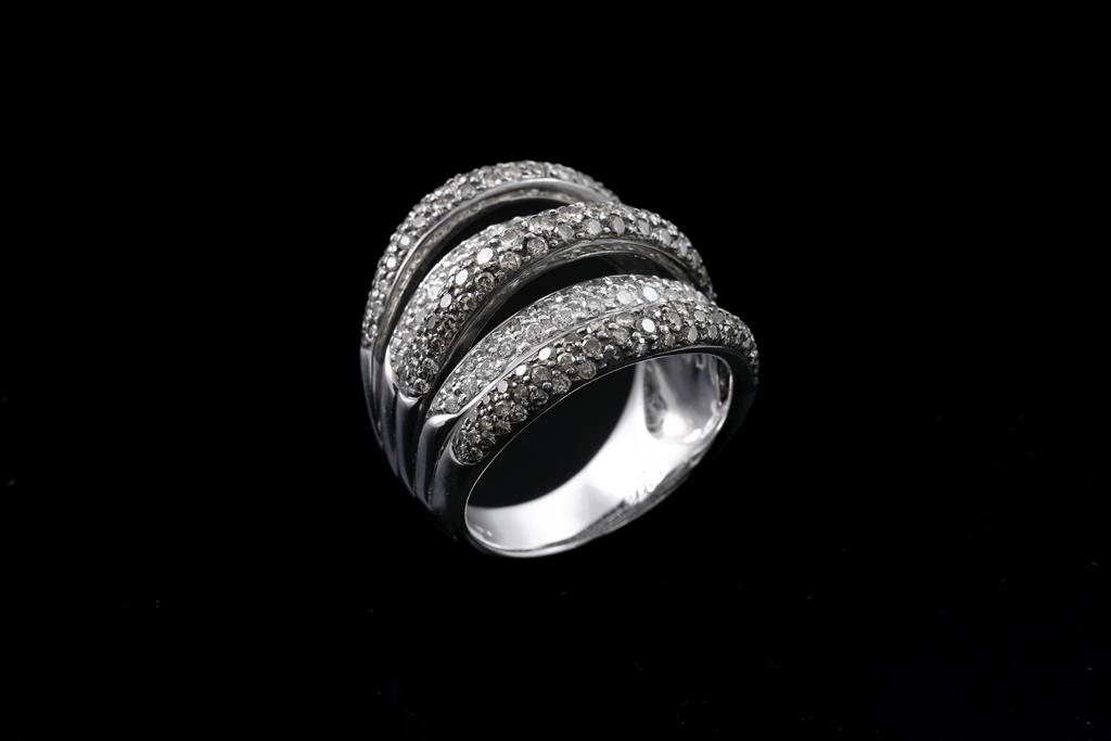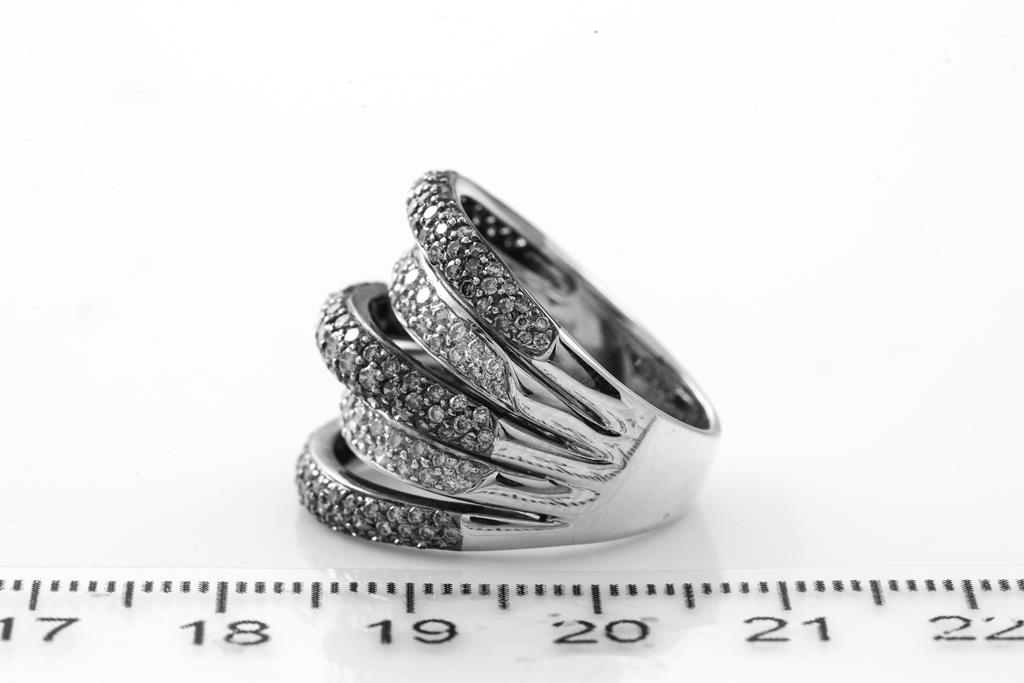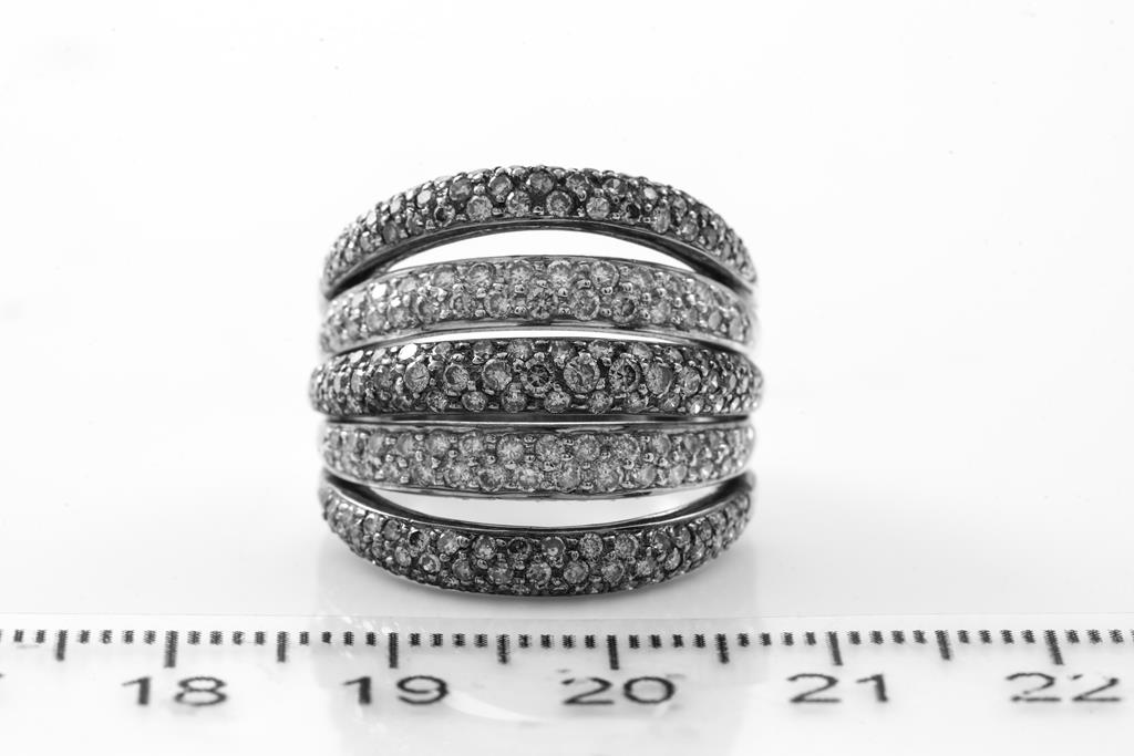 Diamond dress ring with round Diamonds totalling 1.92cts (Estimated grading: champagne & I SI-P1). 18ct white gold with black rhodium plating. Ring size M - ring resizing is not recommended. Weight: 11.5g. (Pre-owned)