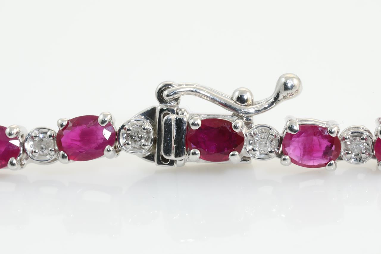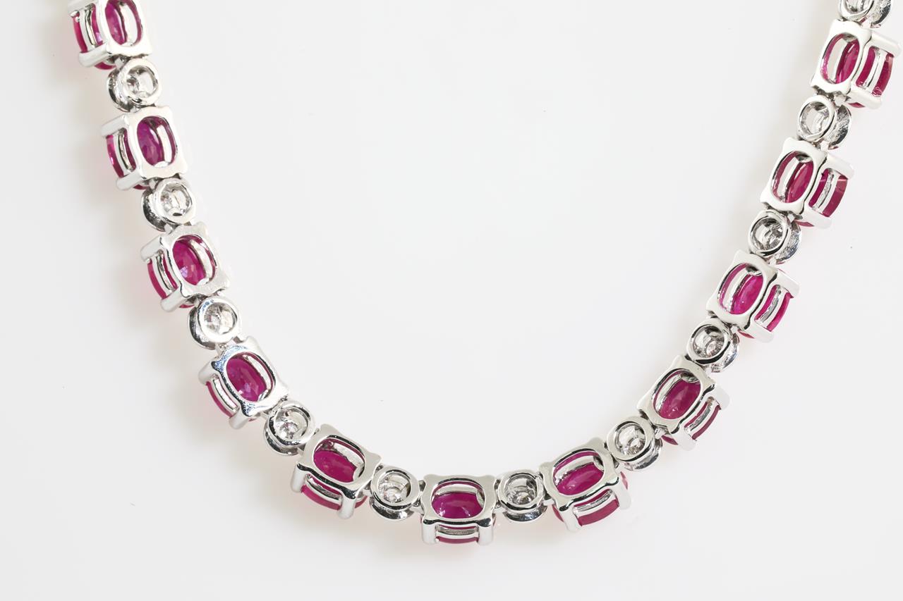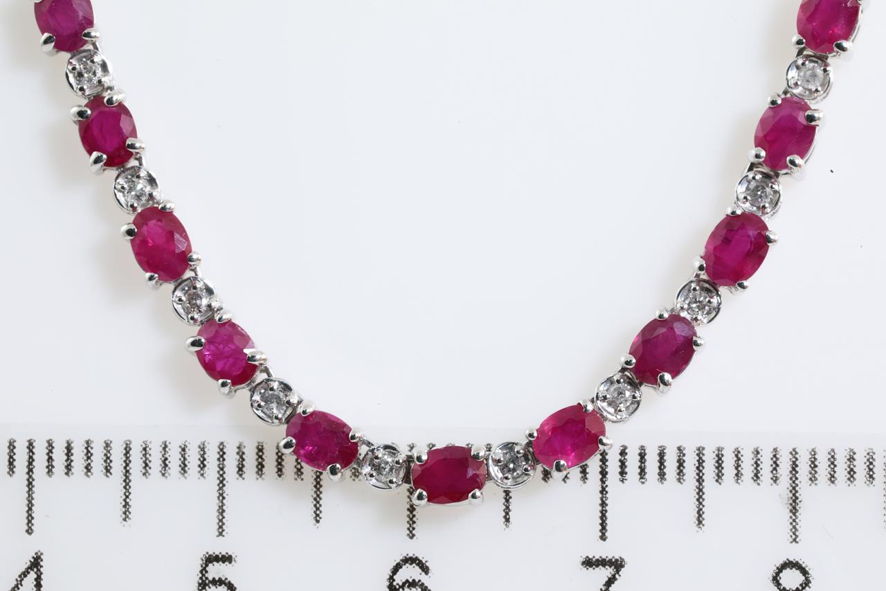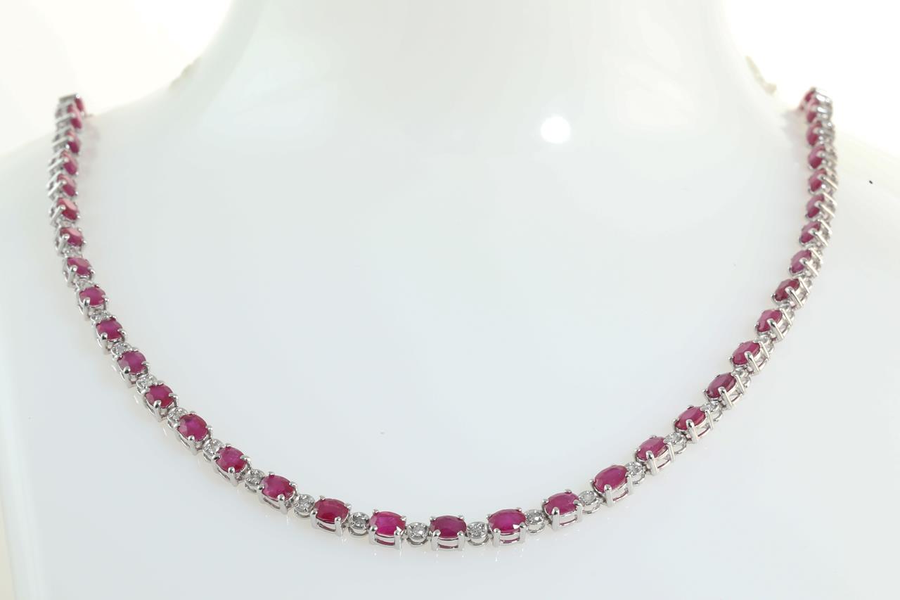 Ruby and Diamond necklace with Rubies totalling 11.52cts and Diamonds totalling 0.70cts (Estimated grading: G P2-3). 18ct white gold. Length 42cm. Weight: 15.9g (Pre-owned)