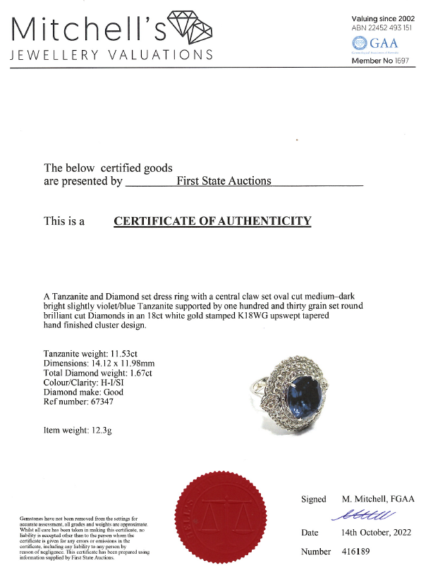 11.52ct Tanzanite and Diamond Ring | First State Auctions