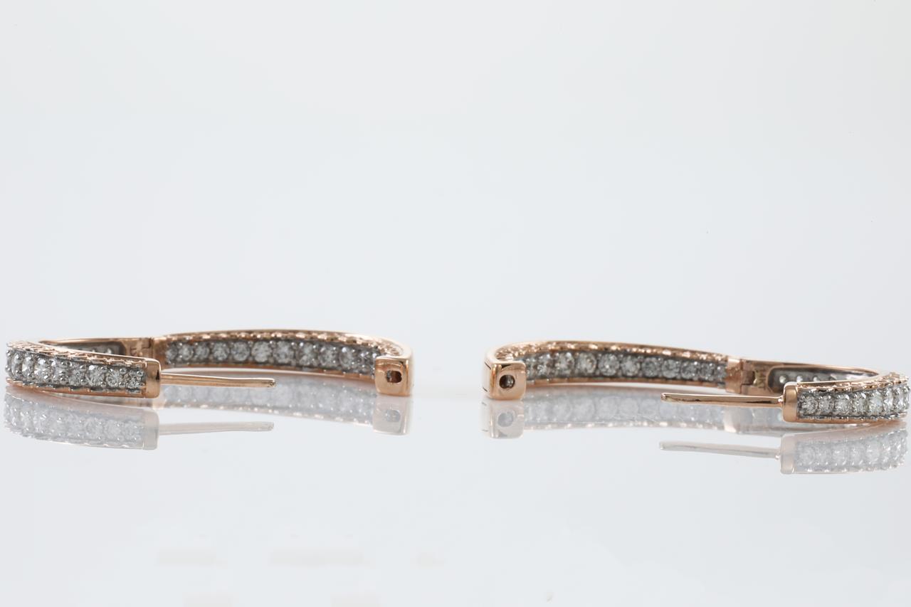 Diamond hoop earrings with round Diamonds totalling 1.15cts (Estimated grading: H SI). 14ct rose gold. Weight: 6.3g (New)
