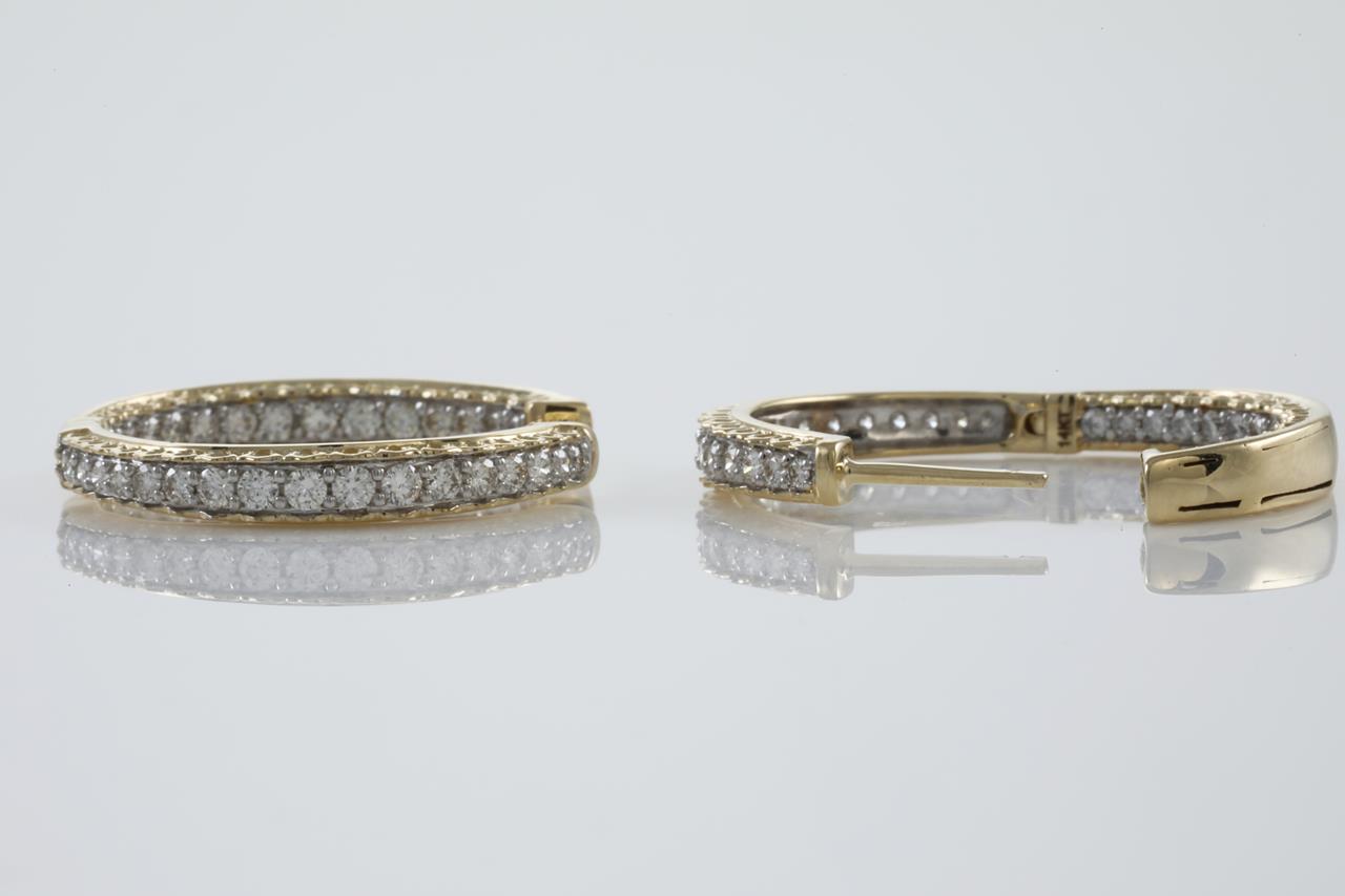 Diamond hoop earrings with round Diamonds totalling 1.15cts (Estimated grading: H SI) 14.ct yellow gold. Weight: 6.2g (New)