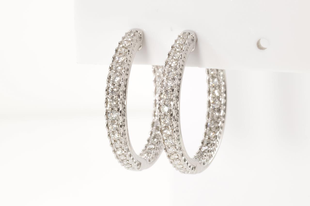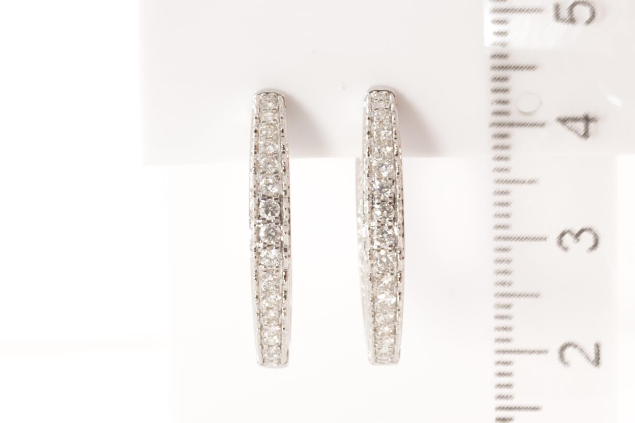 Diamond hoop earrings with 66 round Diamonds totallling 1.15cts (Estimated grading: H SI). 14ct white gold. Weight: 6.5g (New)