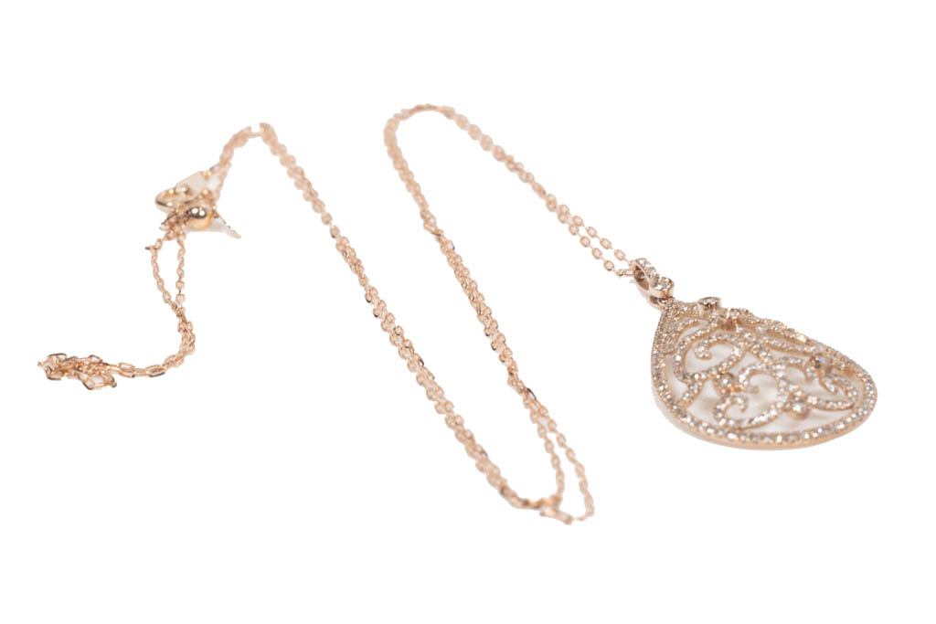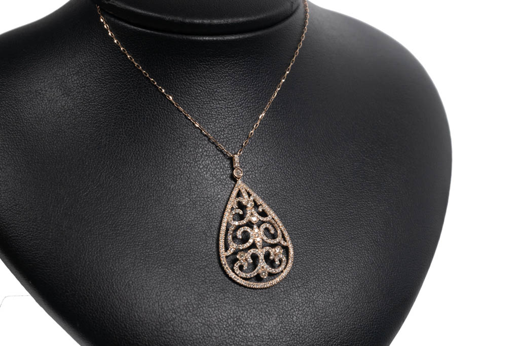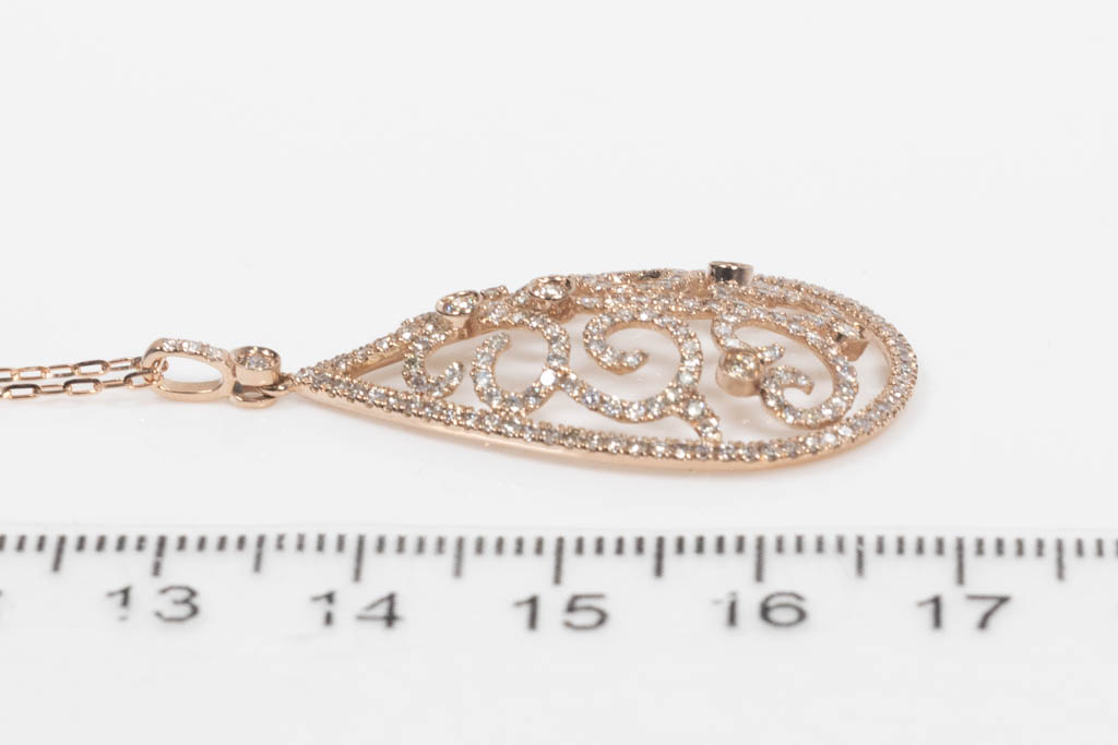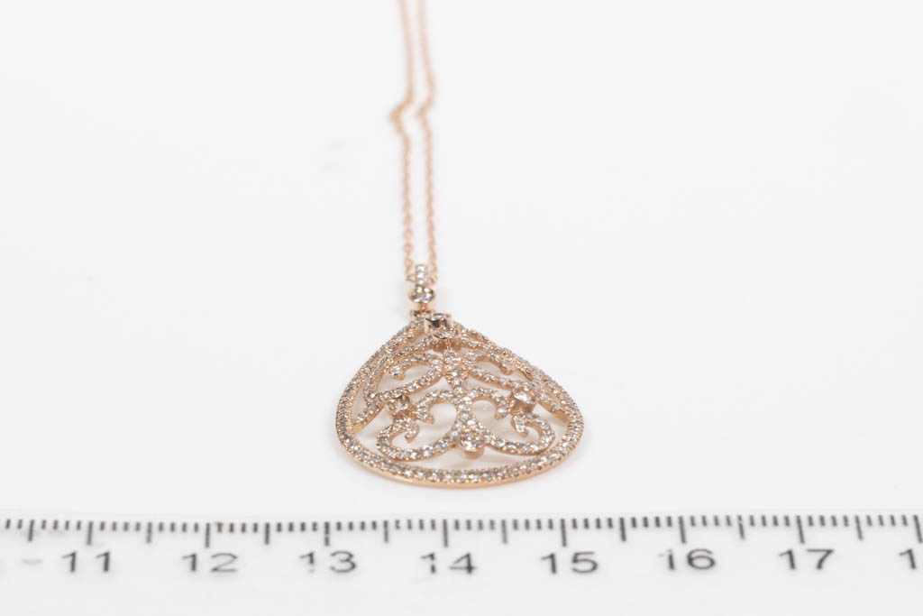 Diamond pendant with round Diamonds totalling 1.15cts (Estimated grading: J SI-P1). 18cts rose gold with 70cm 18ct rose gold adjustable chain. Weight: 5.3g. (Pre-owned)