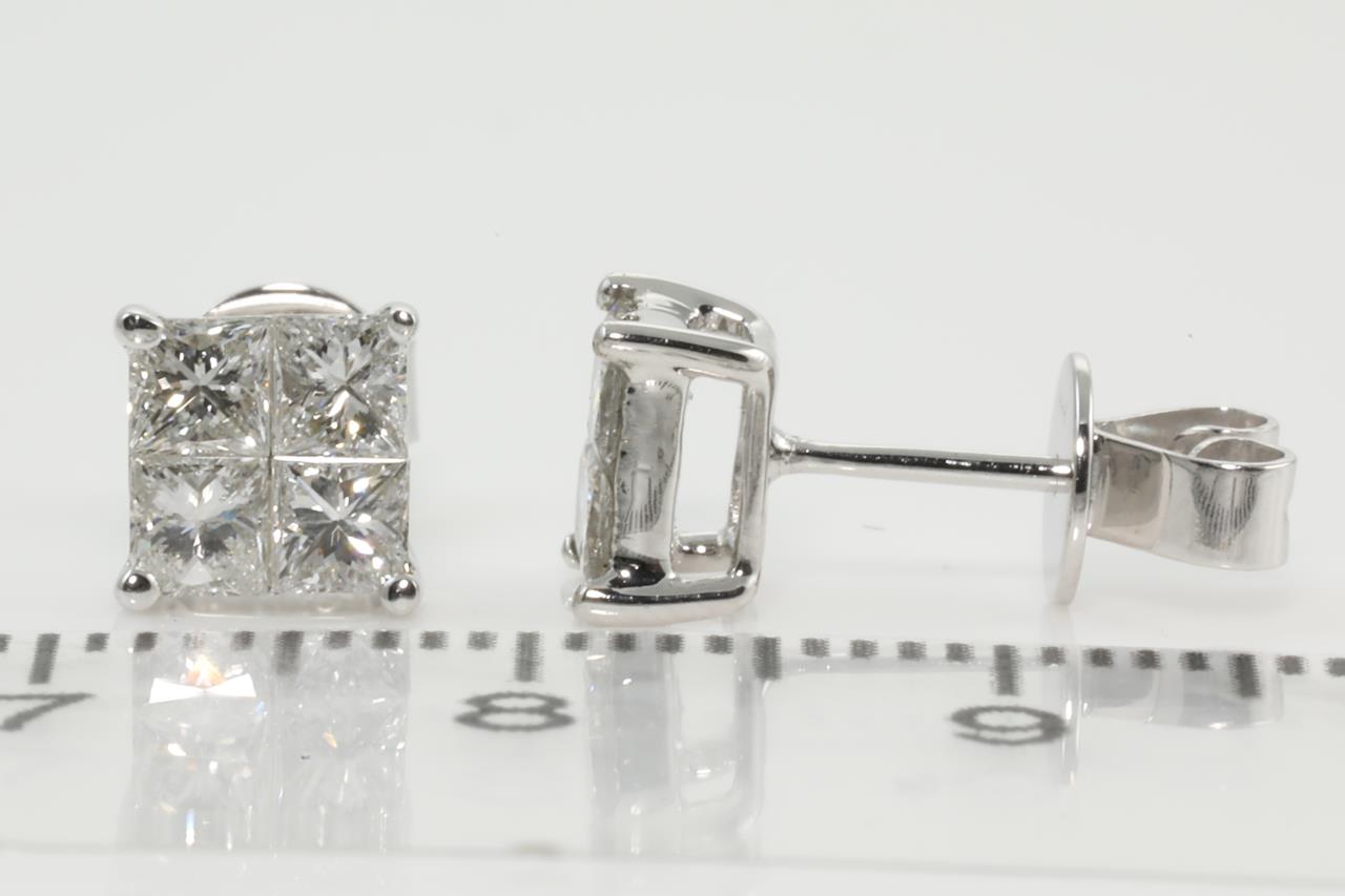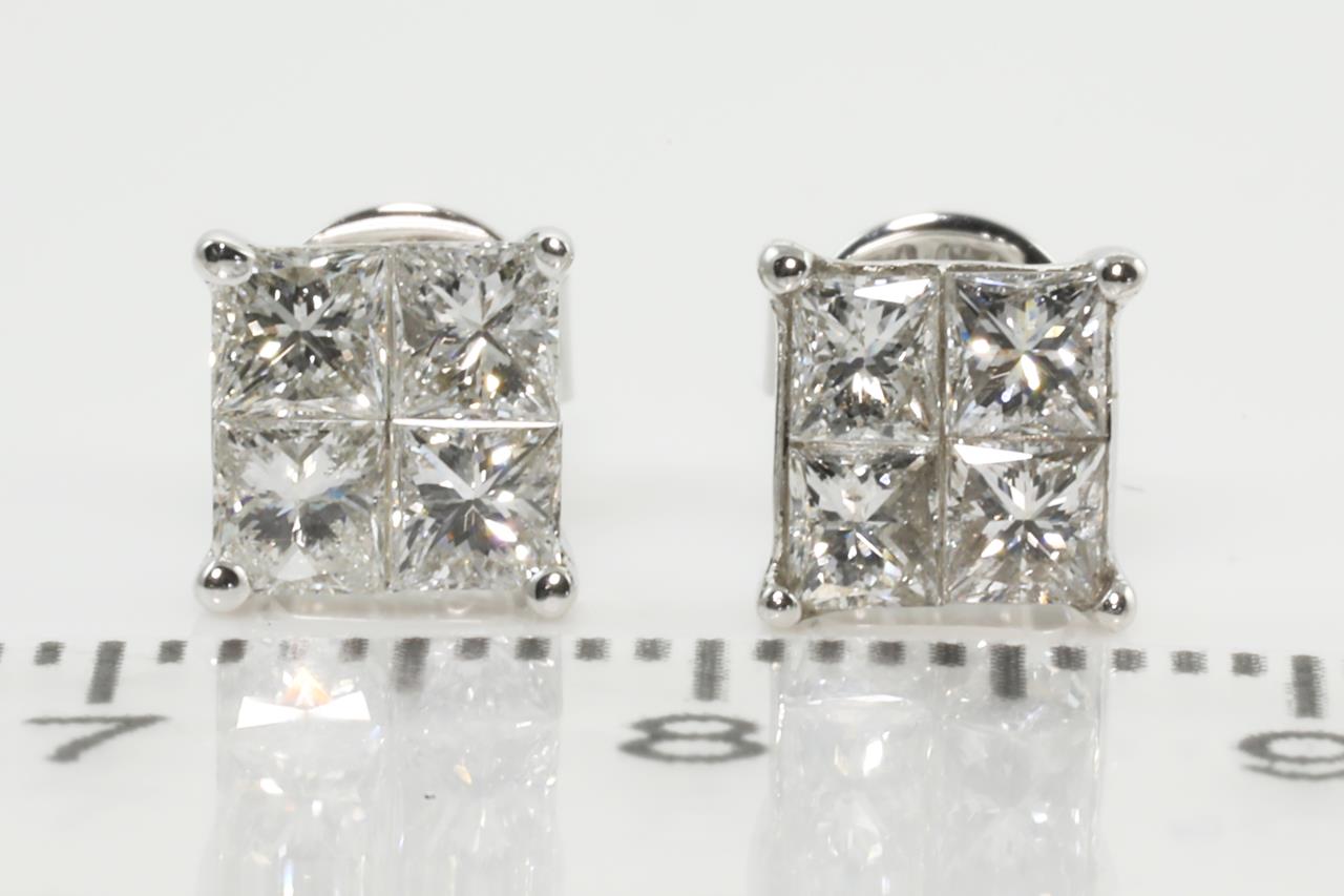 Diamond earrings with 8 princess cut Diamonds totalling 1.16cts (Estimated grading: H-I SI). 18ct white gold. Weight: 2.2g (Pre-owned)