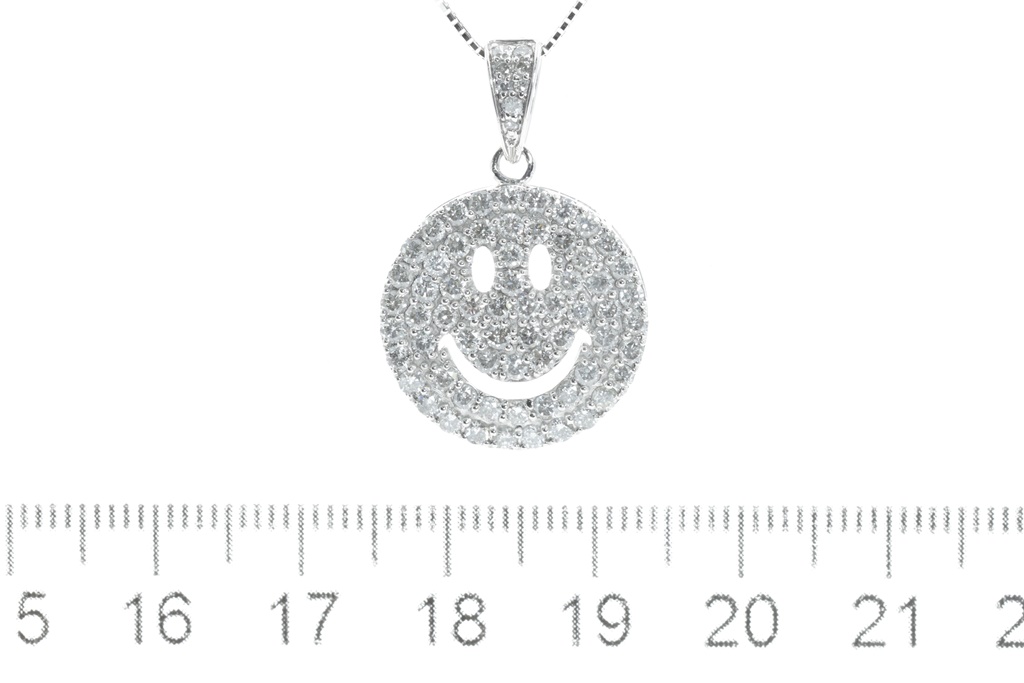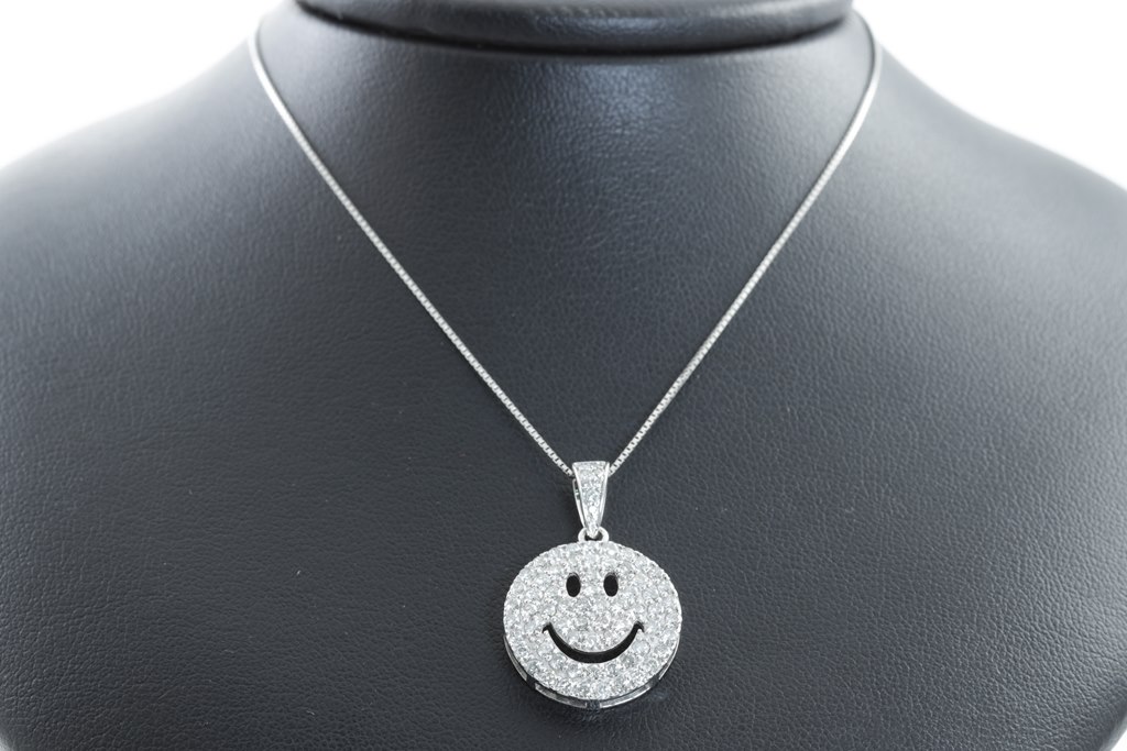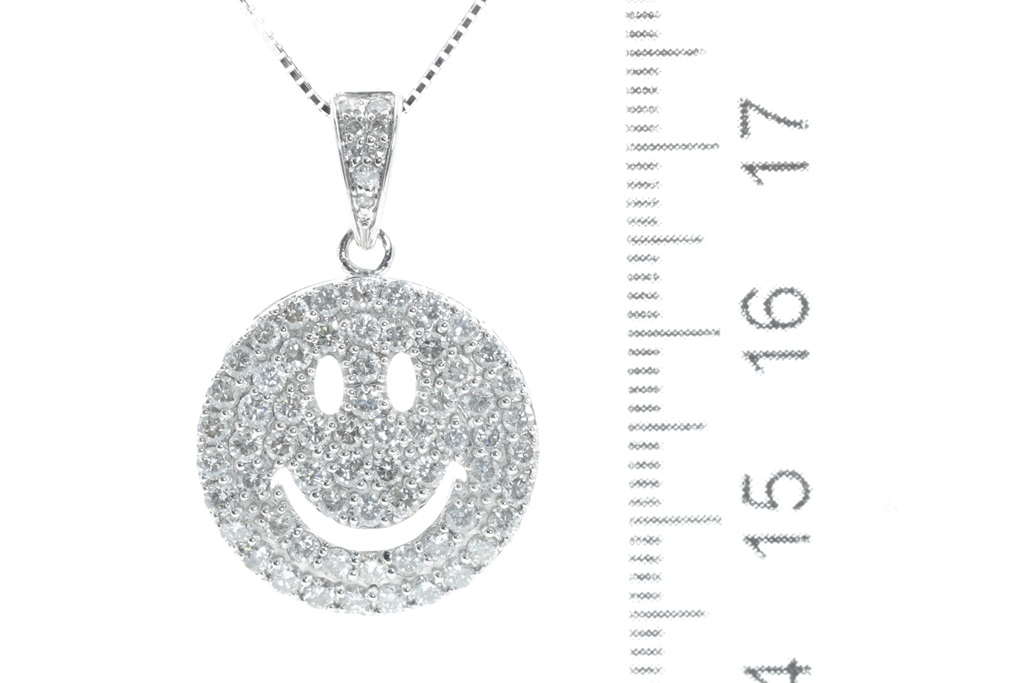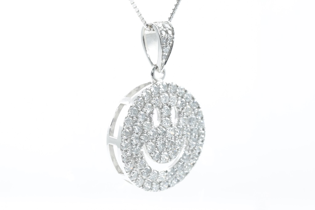 Diamond Smiley face pendant with round Diamonds totalling 1.16cts (Estimated grading: G-H SI-P1). 18ct white gold with adjustable chain of 44cm. Weight: 6.3g (Pre-owned)
