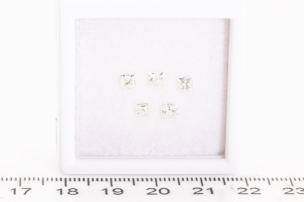 A loose parcel of 5 princess cut Diamonds totalling 1.16cts (Estimated grading: Natural Light Yellow VS-SI). (New)