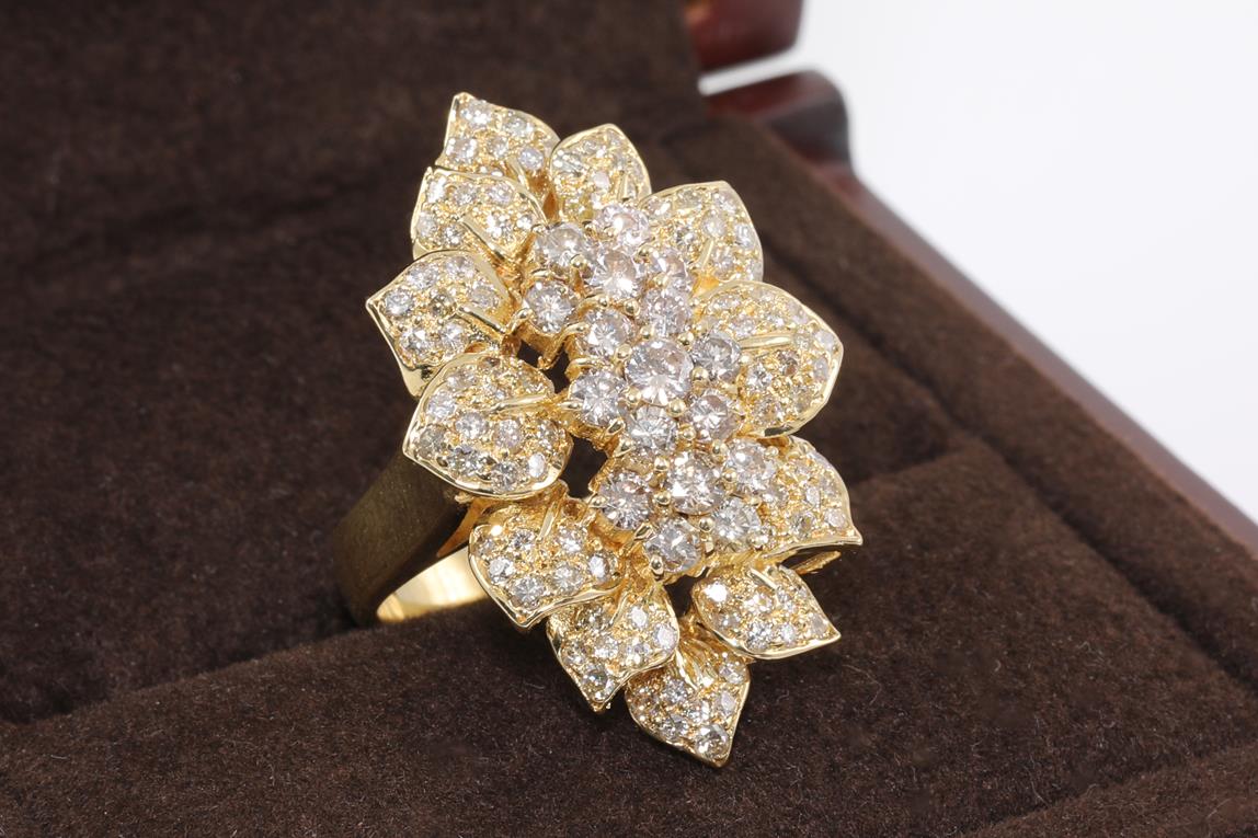 Diamond dress ring with Diamonds totalling 1.17cts (Estimated grading: HIJ SI). 18ct yellow gold. Ring size J. Weight: 16.3g (Pre-owned)
