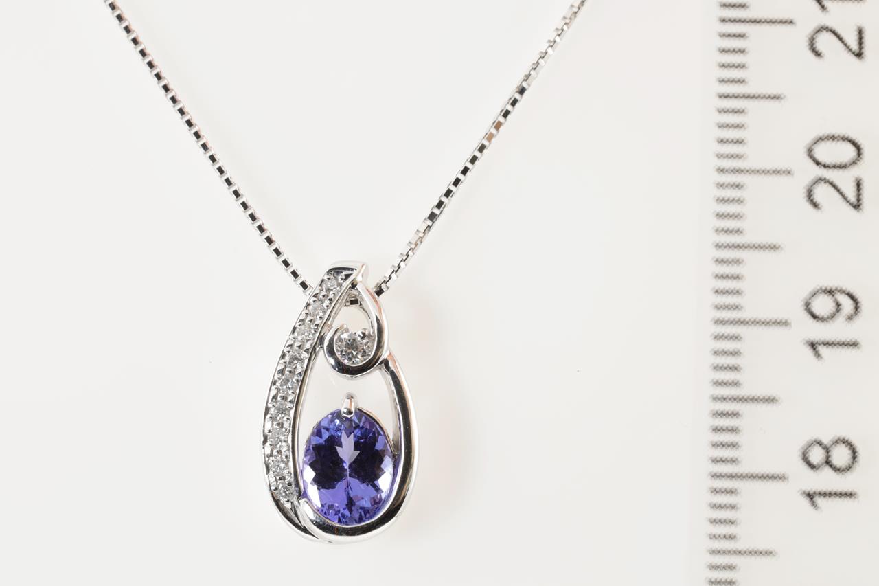 Tanzanite and Diamond pendant with an oval Tanzanite of 1.17ct and Diamonds totalling 0.13cts. Platinum with 18ct white gold 44cm adjustable chain. Weight: 5.1g. (Pre-owned)