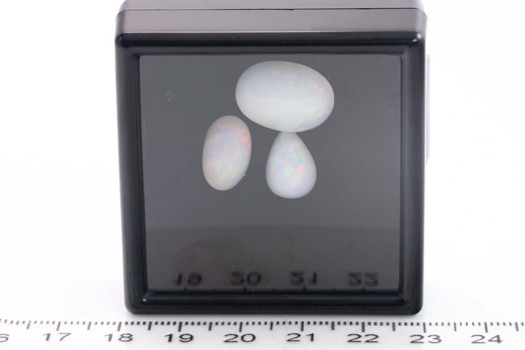 A loose parcel of 3 mixed shape cabochon cut White Opals totalling 11.80cts. (As New)