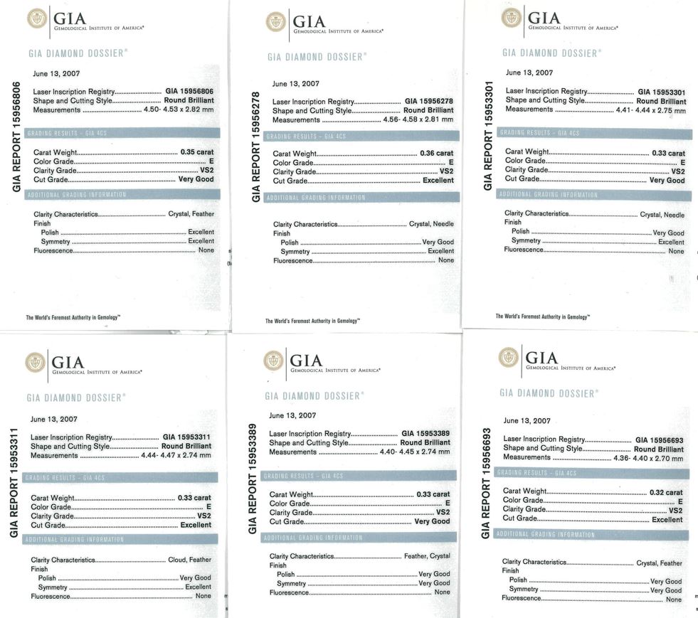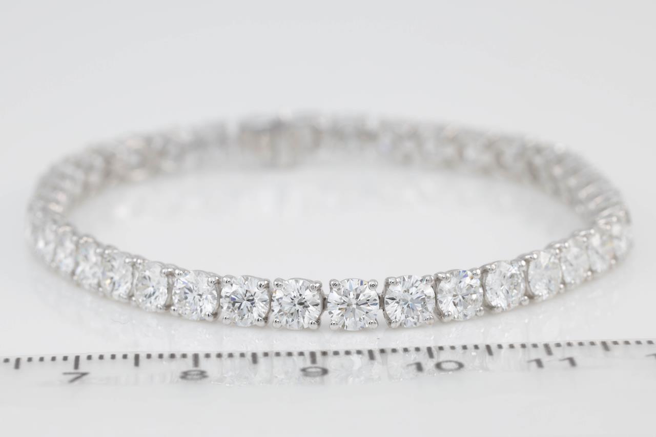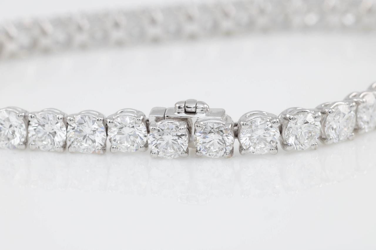 Diamond tennis bracelet with 38 round Diamonds totalling 11.88cts (each stone with a GIA summary report graded as Colour: E or F Clarity: VS1 or VS2). 18ct white gold. Length: 17.5cm. Weight: 13.6g. (Pre-owned)