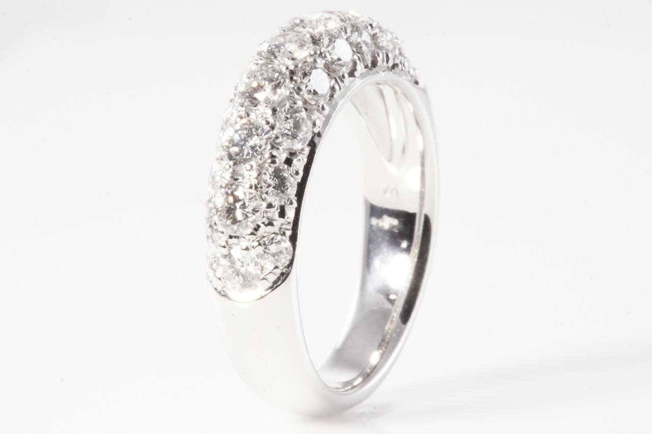 Diamond dress ring with round Diamonds totalling 1.18cts (Estimated grading: F-G VS). 18ct white gold. Ring size: I - Note resizing is not recommended. Weight: 5.2g (Pre-owned)
