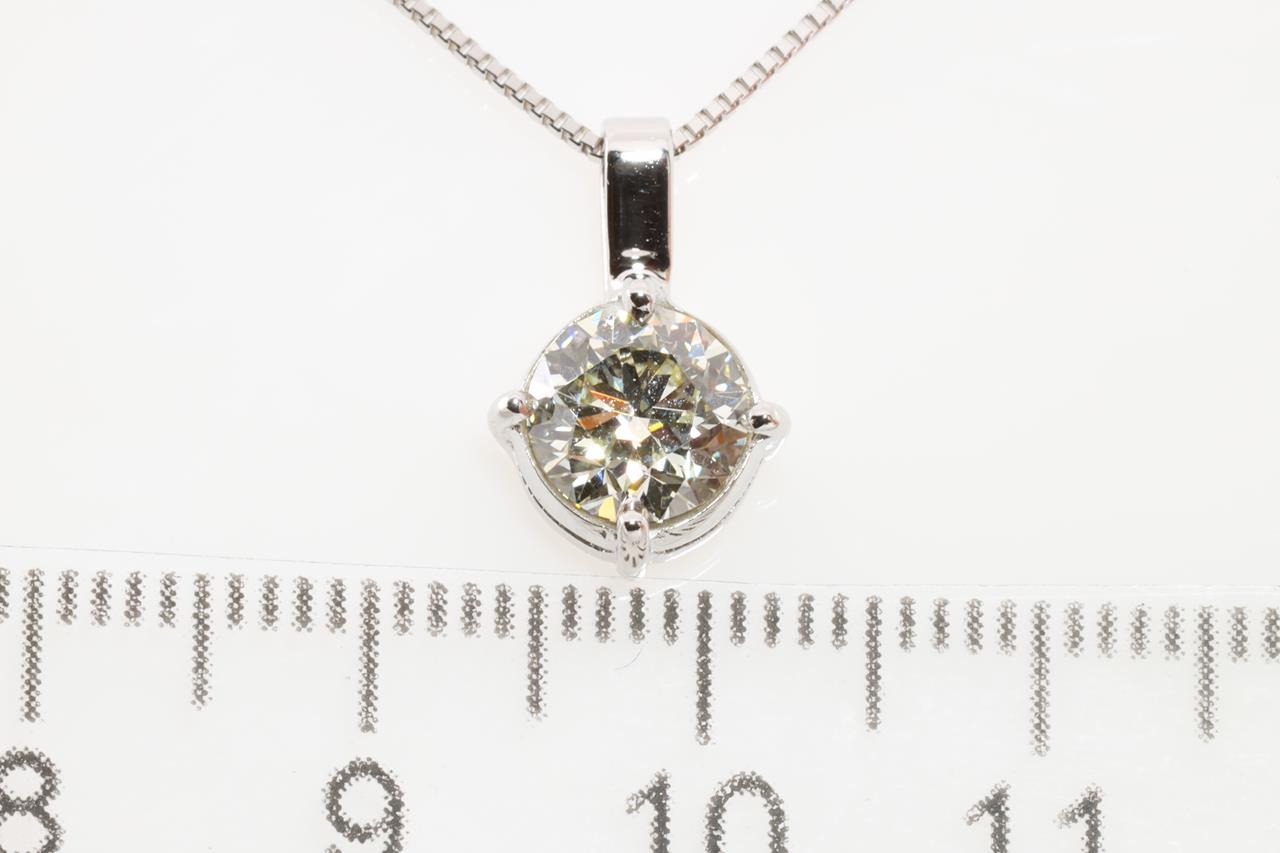 Diamond Solitaire Pendant with round brilliant cut Diamond of 1.18ct (With GSL report graded as P VS1#AA61053/2) set in 18ct white gold with adjustable 45cm chain. Weight: 2.9. (New)