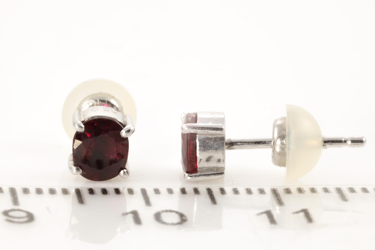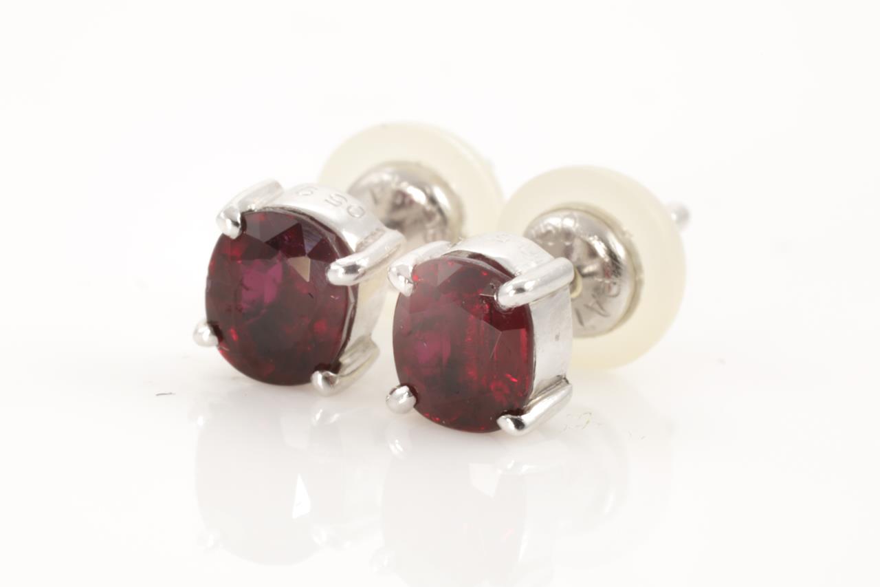 Ruby stud earrings with oval shape Rubies totalling 1.18cts. Platinum with platinum & silicon backs. Weight: 3.2g (Pre-owned)
