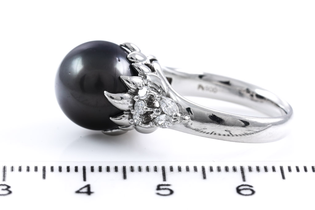 Pearl and Diamond ring with Tahitian Pearl of 11.8mm and marquise cut & round Diamonds totalling 0.35cts (Estimated grading: H SI). Platinum. Ring size N. Weight: 11.1g. (Pre-owned)