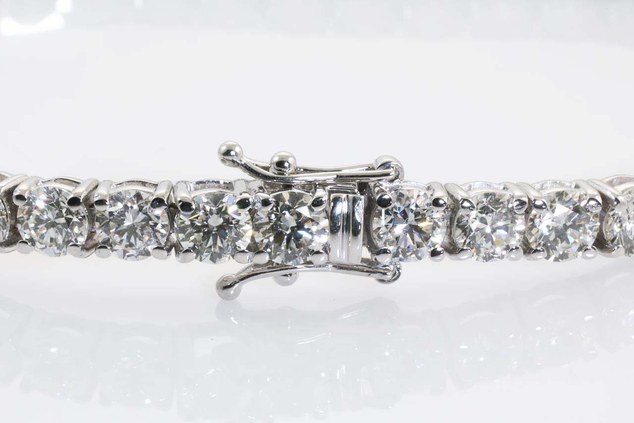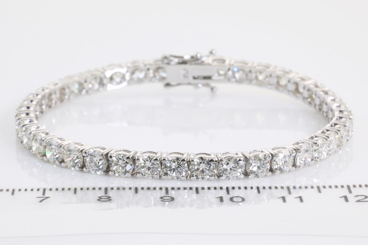 Diamond tennis bracelet with 40 round Diamonds totalling 11.90cts. 18ct white gold. Length: 18cm. Weight: 15.9g. With certificate. (New)