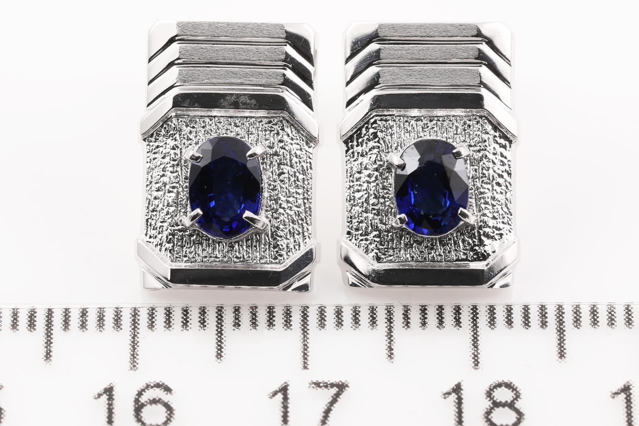 Sapphire earrings with 2 oval blue Sapphires totalling 1.19cts. Platinum. Weight:5.3g (Pre-owned)