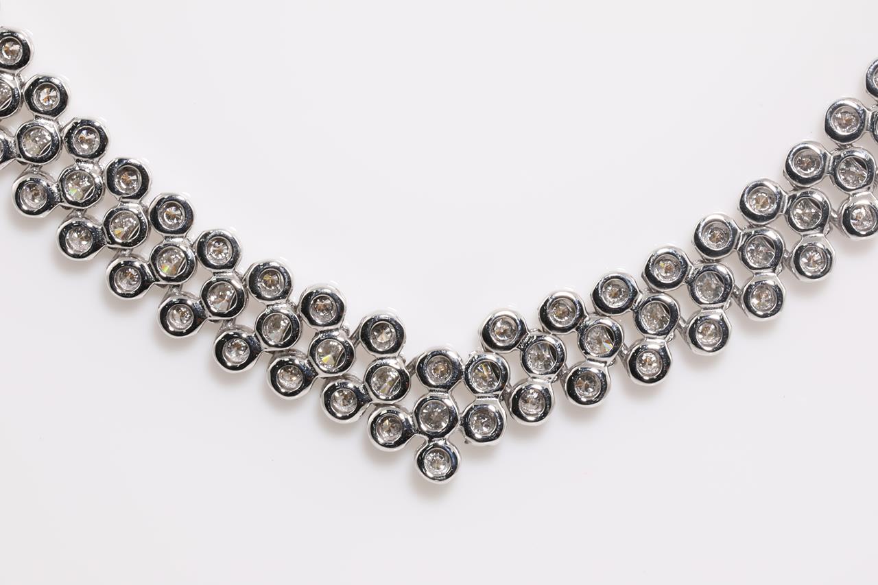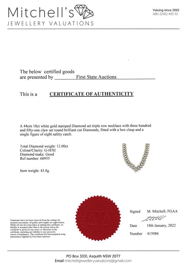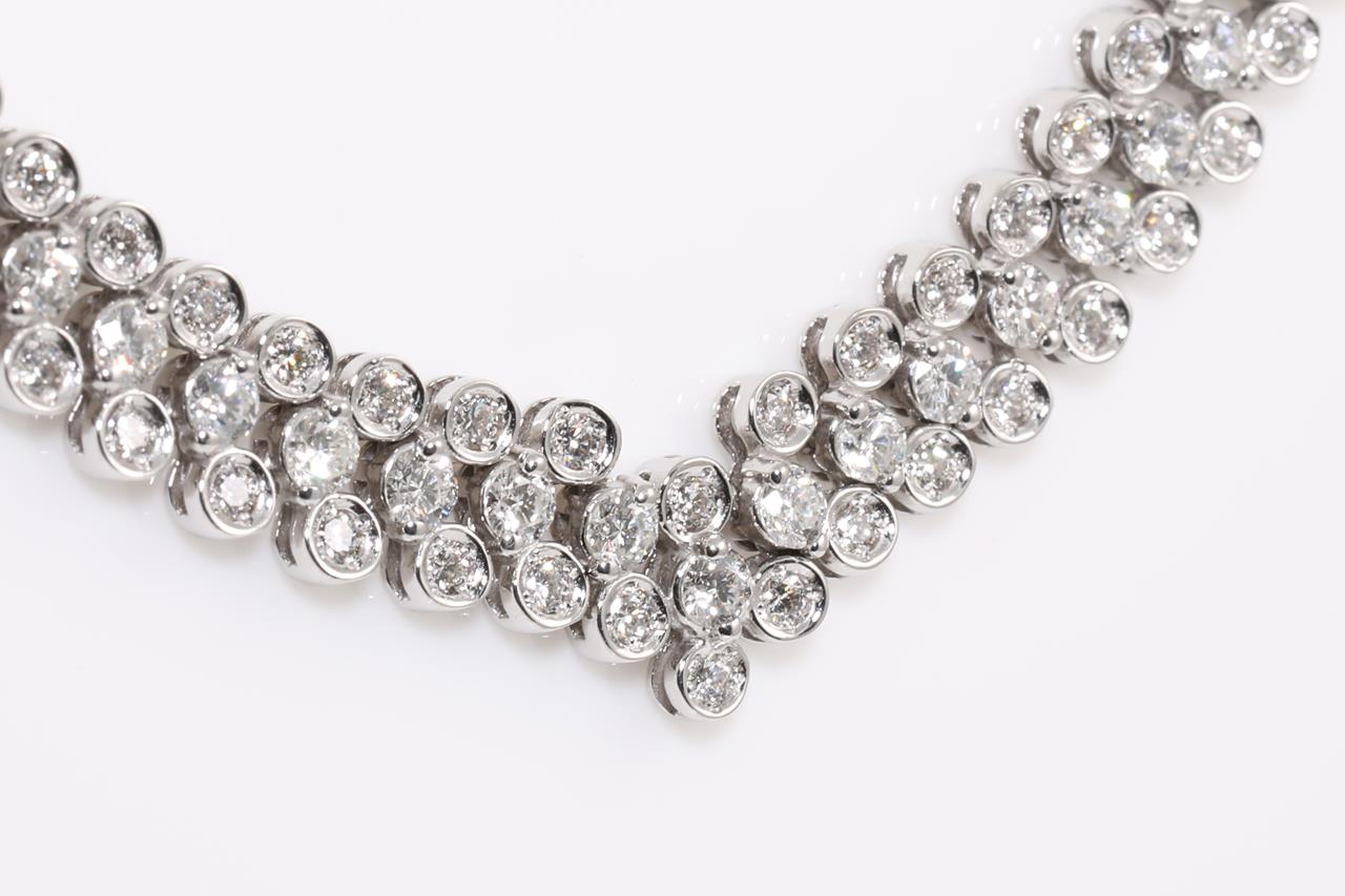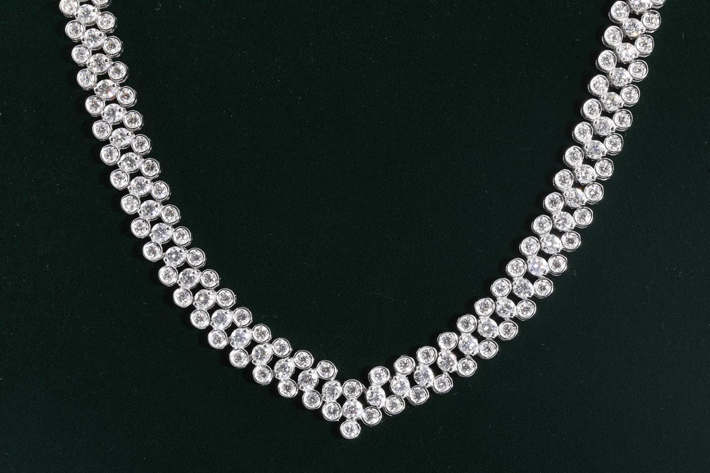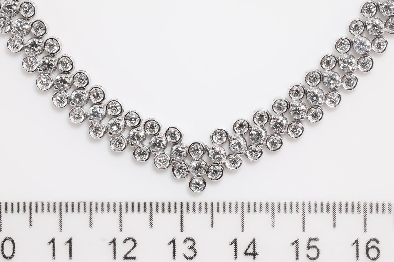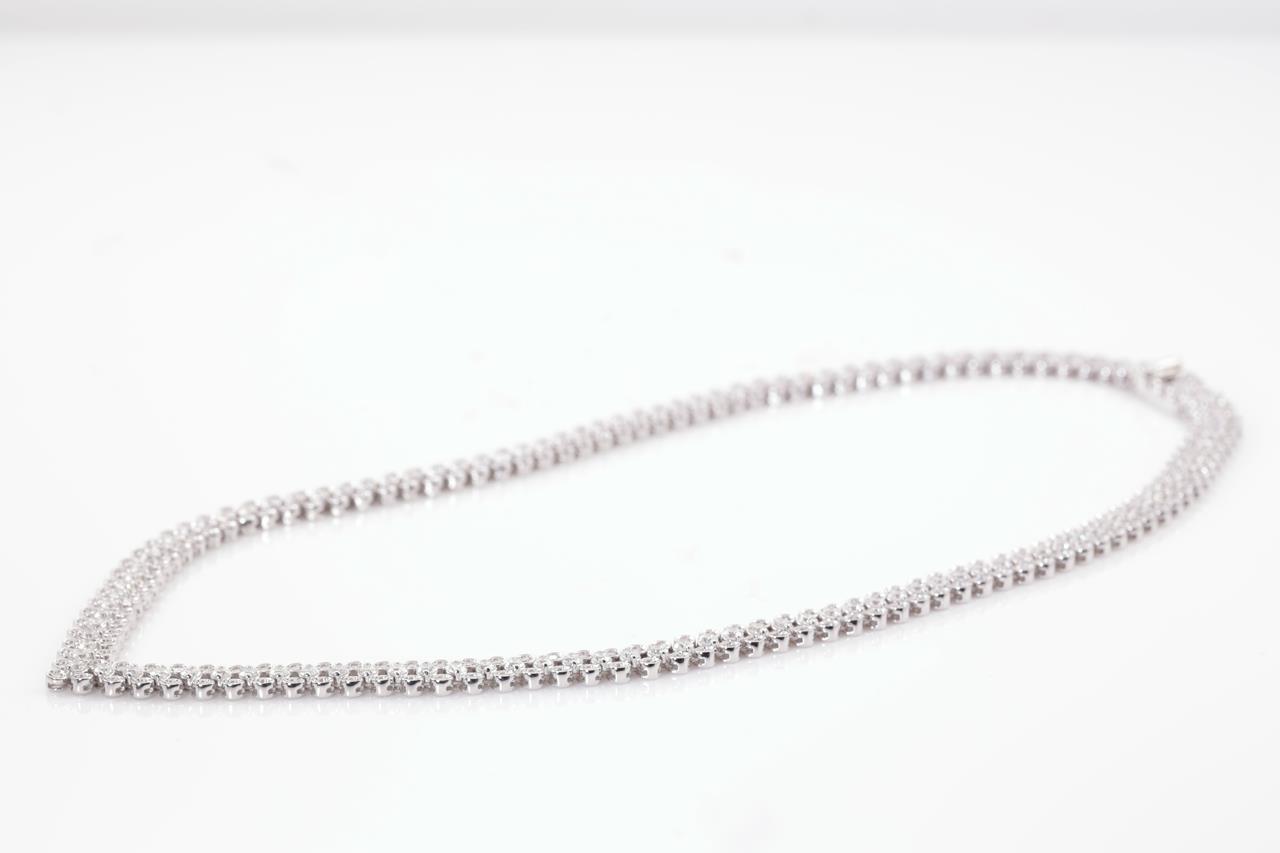 Diamond necklace with round Diamonds totalling 12.00cts (Estimated grading: G-H SI). 18ct white gold. Length: 44cm. Weight: 43.8. With certificate #415086. (Pre-owned)