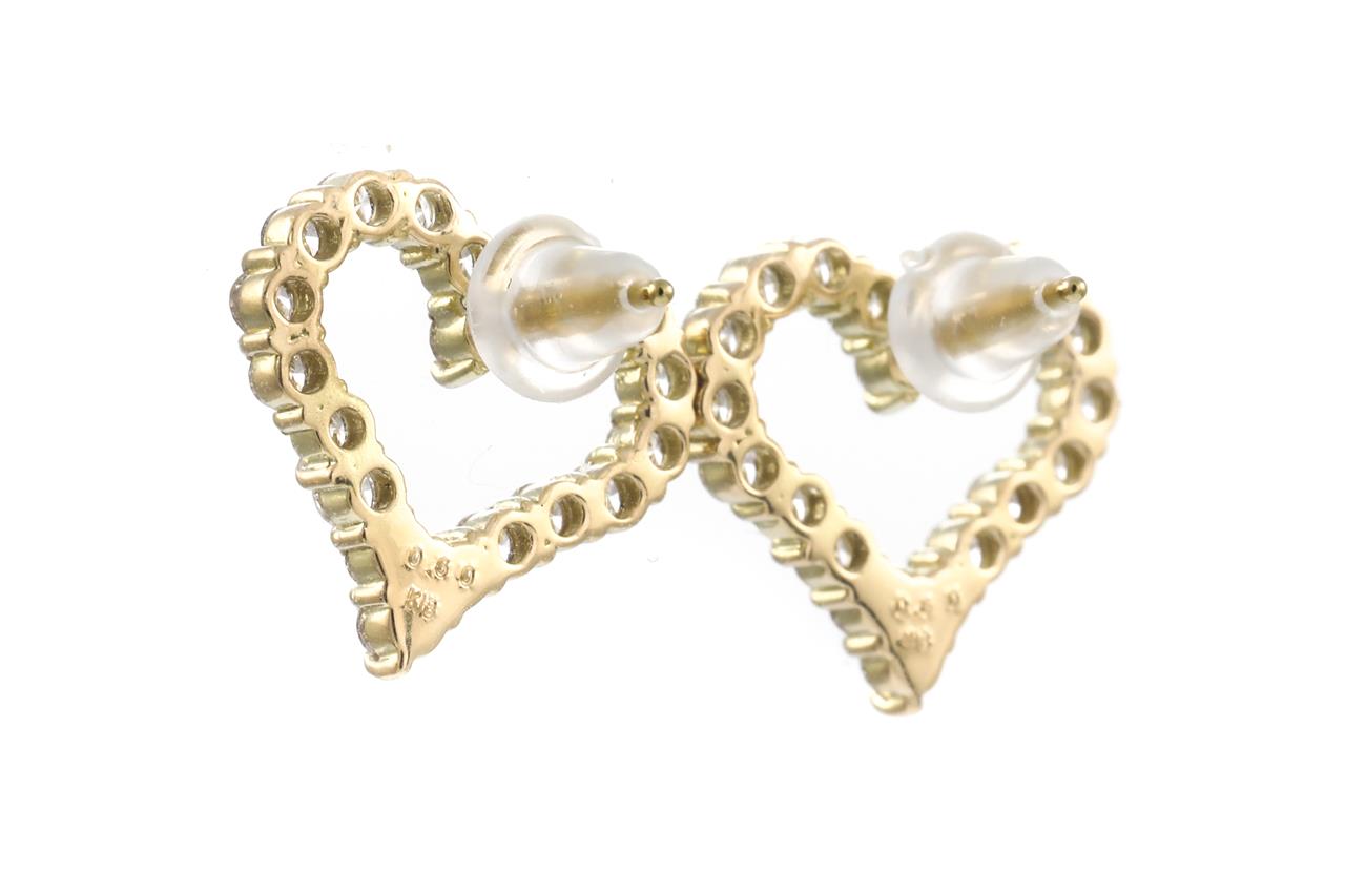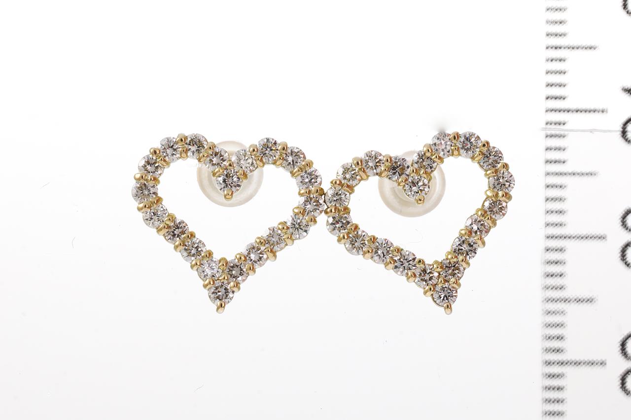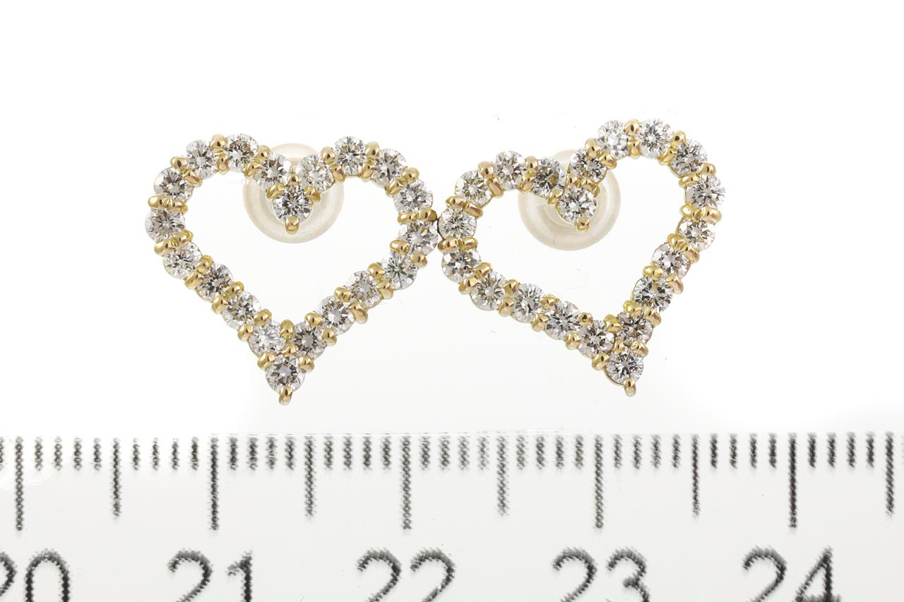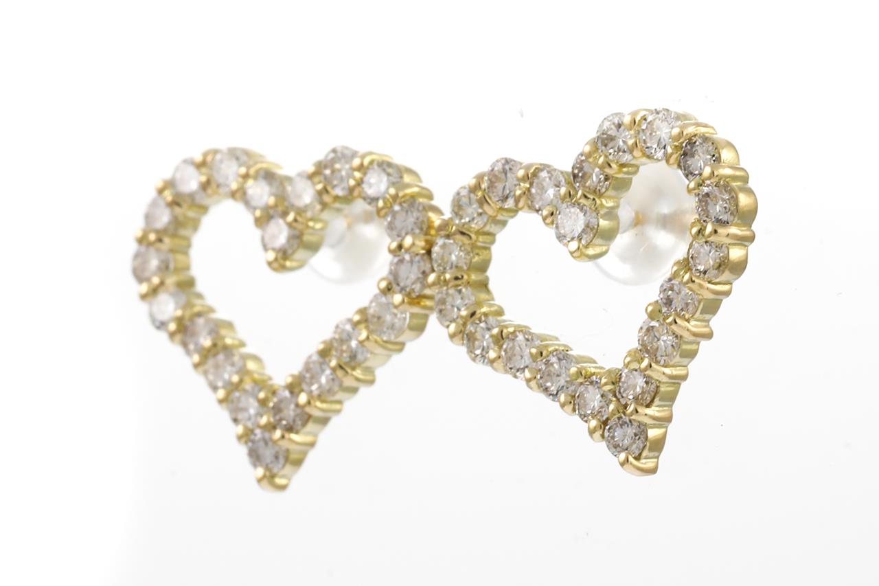 Diamond heart design earrings with round Diamonds totalling 1.20cts (Estimated grading: I SI). 18ct yellow gold with silicon backs. Weight: 3.0g (Pre-owned)