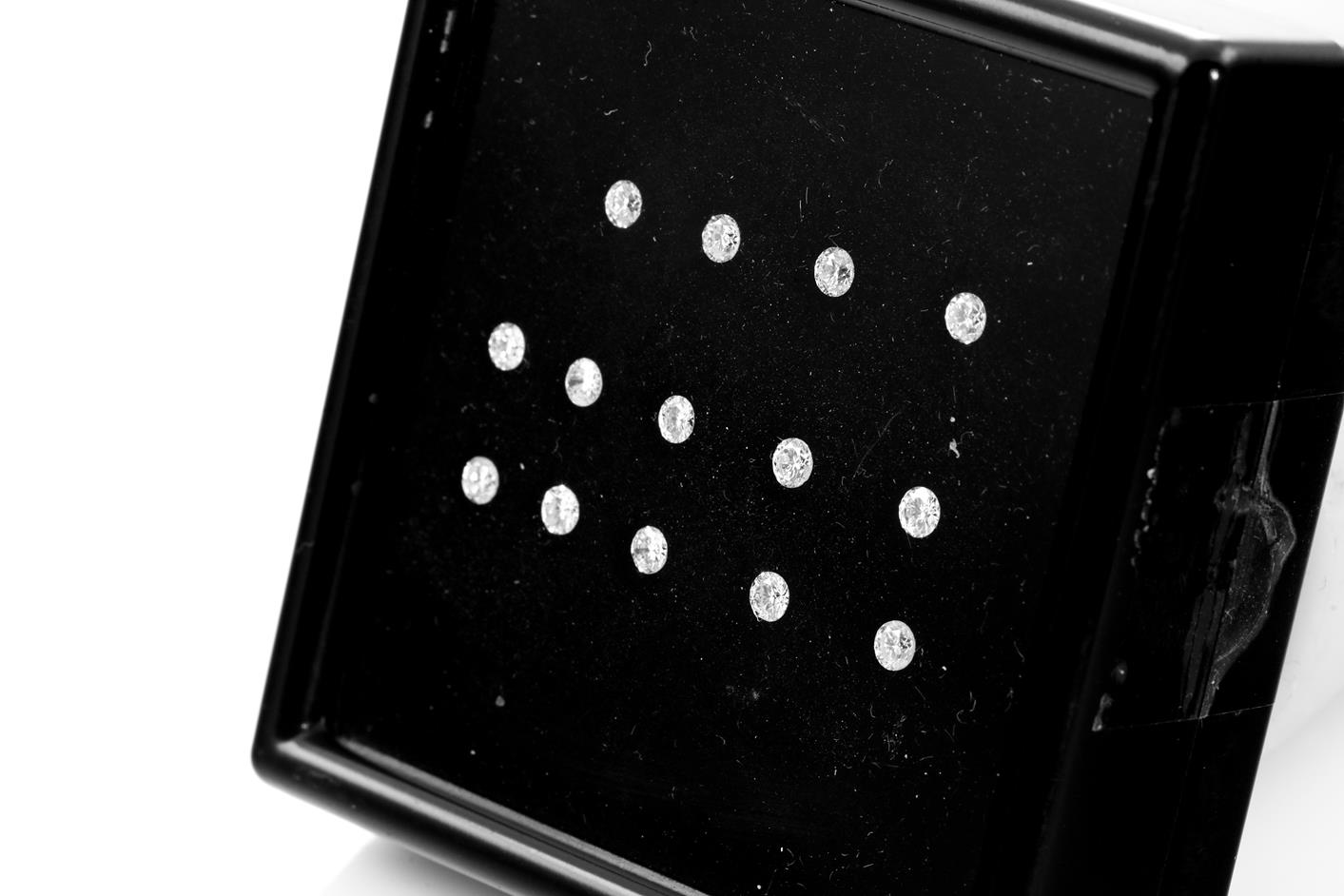 A loose parcel of 14 round brilliant cut Diamonds totalling 1.20cts (Estimated grading: H-J SI P1; 2.75-2.8mm). (New)