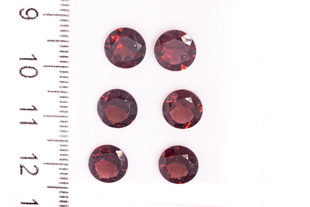 A loose parcel of 6 round garnets totalling 12.12cts. Measuring 8mm. (As New)