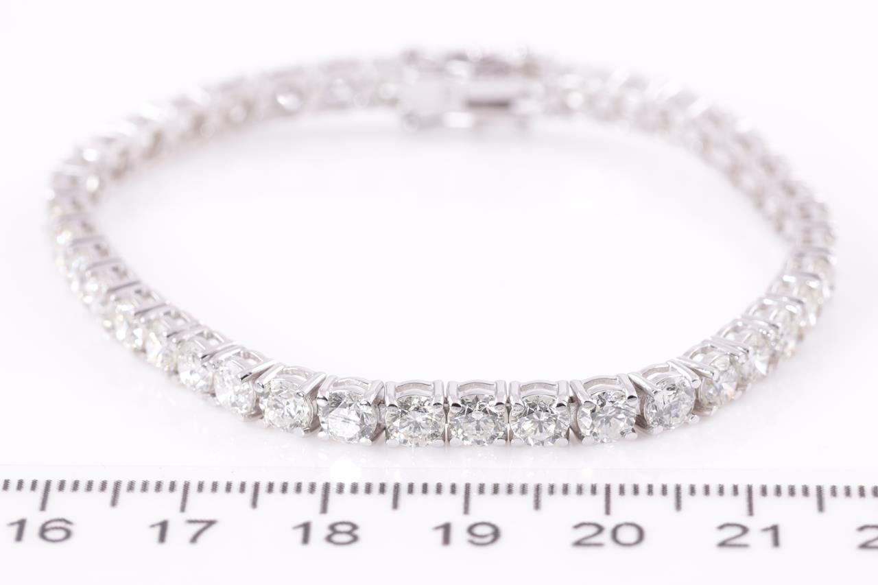 Diamond tennis bracelet with 40 round Diamonds totalling 12.13cts (Estimated grading: H-I SI). 18ct white gold. Length: 18.5cm. Weight: 15.8g. With certificate #414808. (New)