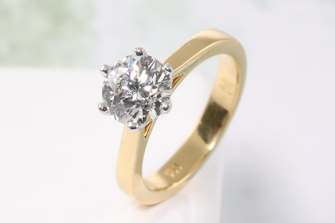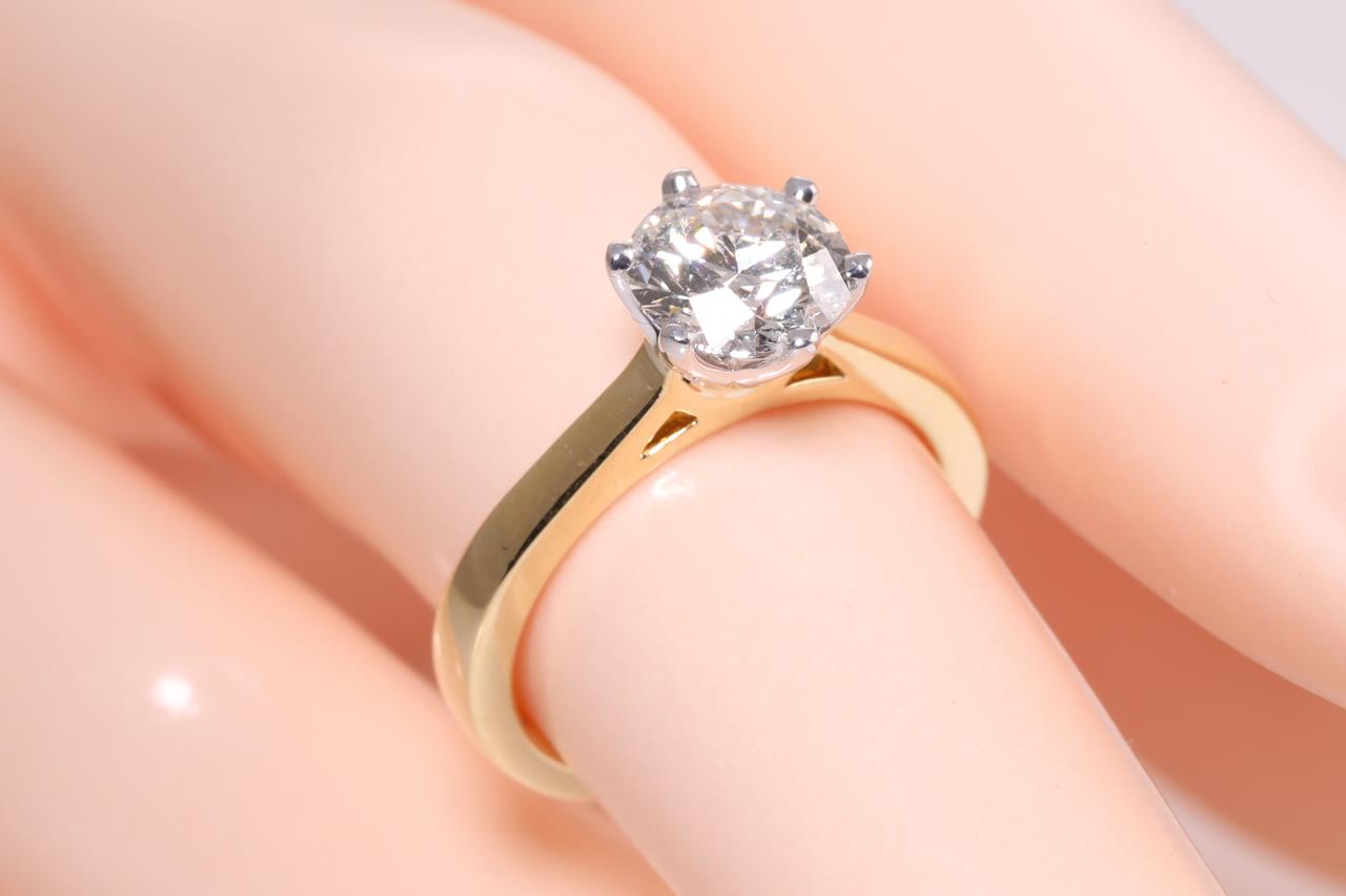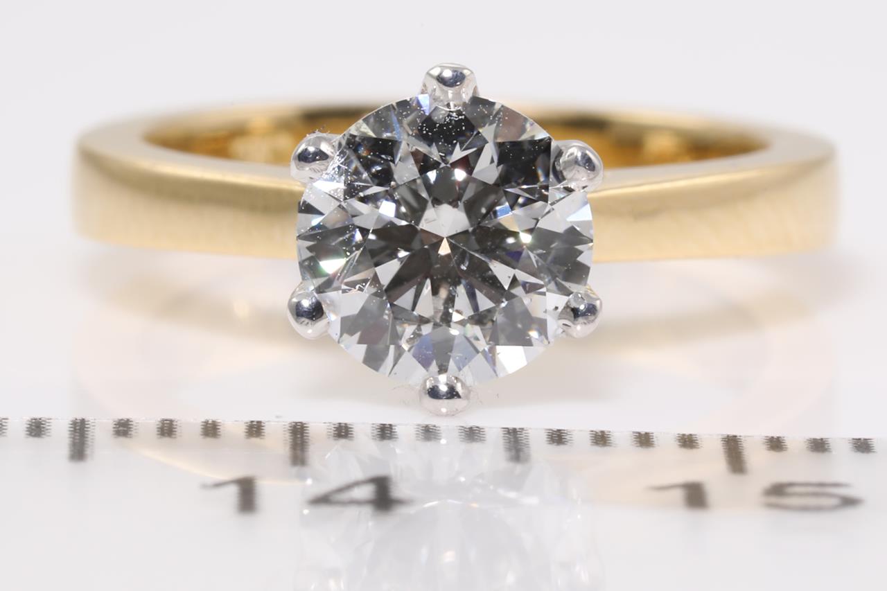 Diamond solitaire ring with a round brilliant cut Diamond of 1.21ct (With GIA report graded as G SI1 #1179354840). 18ct yellow & white gold. Ring size H. With certificate of sale dated 04/06/2016. Weight: 4.5g. (Pre-owned)
