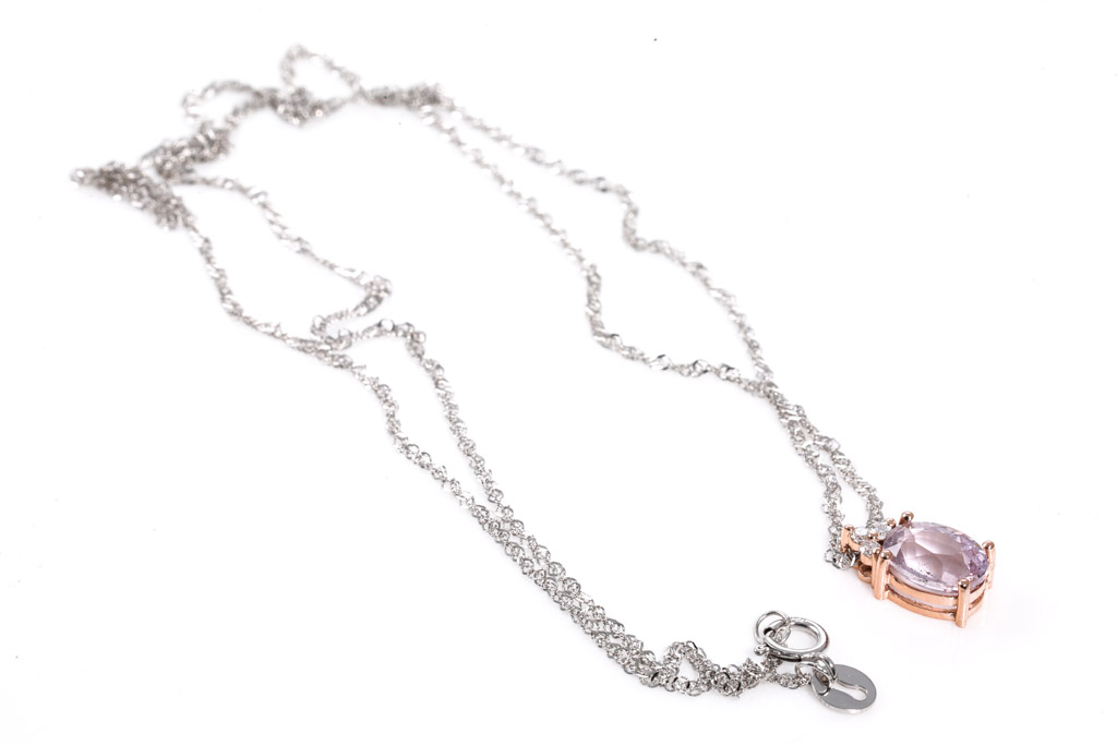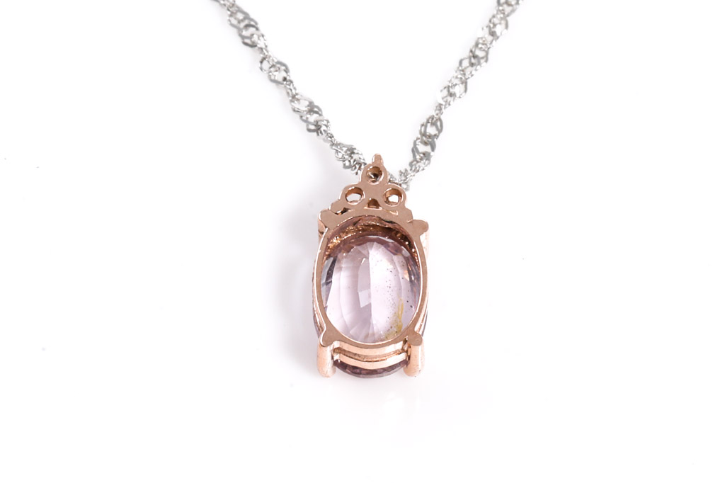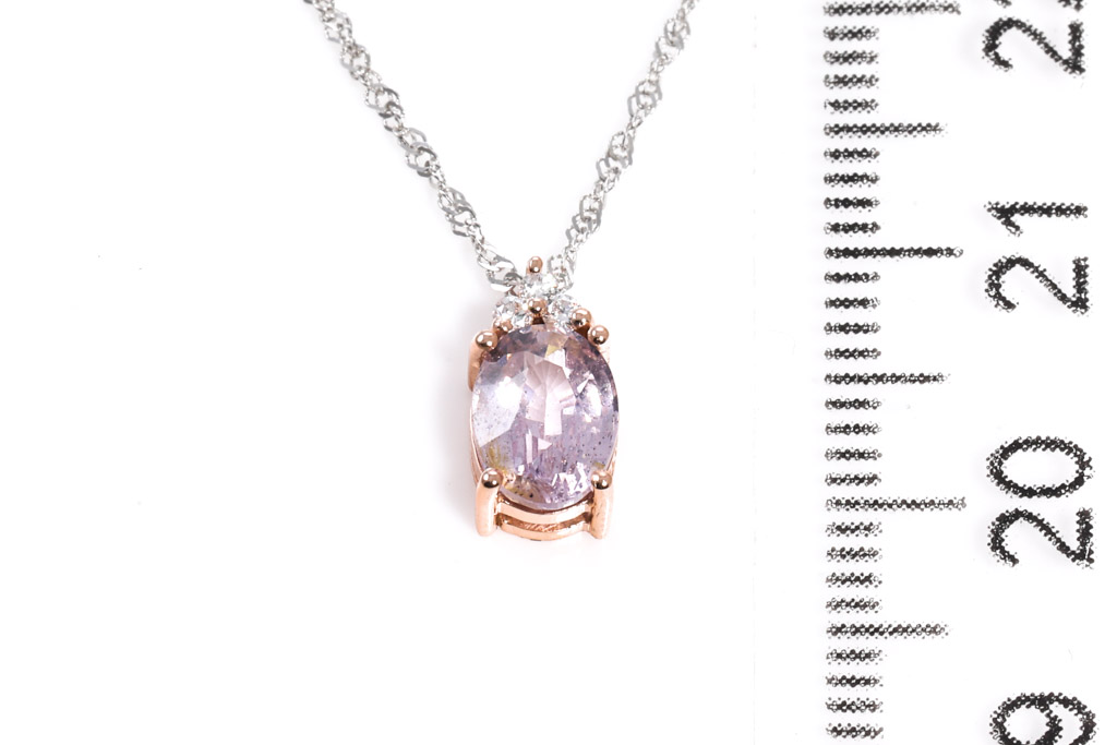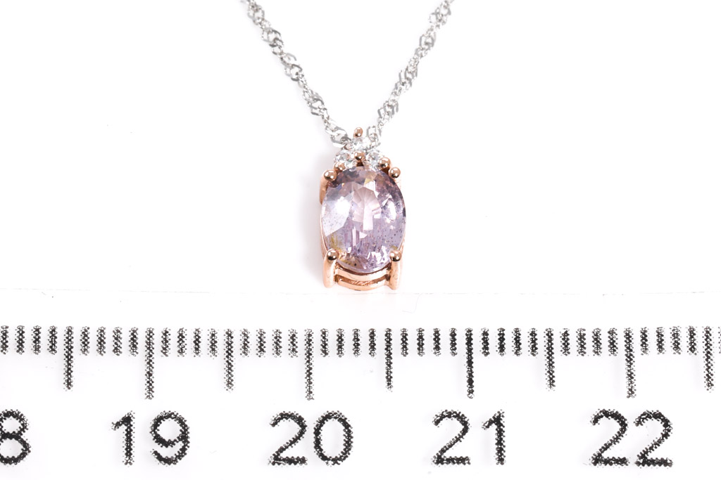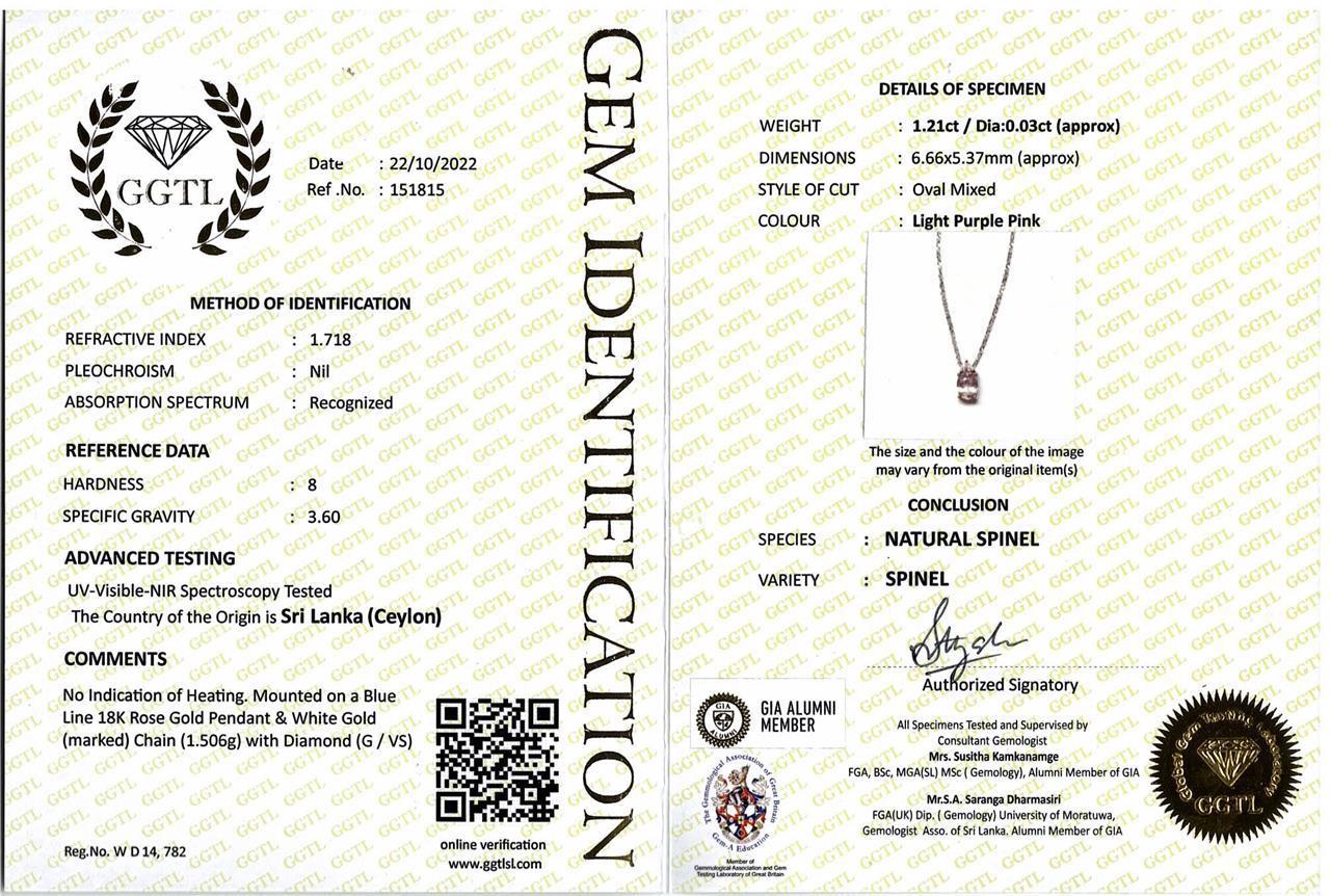 Spinel pendant with oval Ceylon light purple pink unheated Spinel of 1.21ct and round Diamonds totalling approximately 0.03cts. 18ct rose gold with 44cm 18ct white gold chain. Weight 1.5g. With GGTL #151815. (As New)