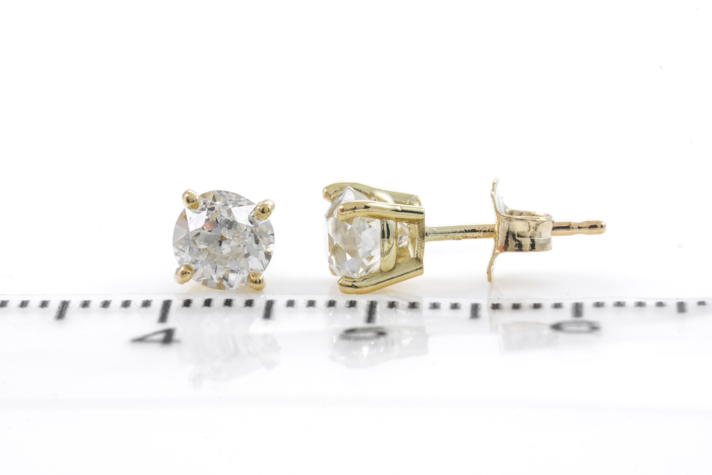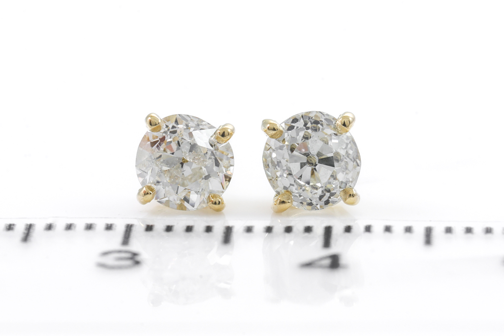 Diamond stud earrings with 2 old cut Diamonds totalling 1.22cts (Estimated grading: H-I SI-P2). 18ct yellow gold. Weight: 1.2g. (Pre-owned).