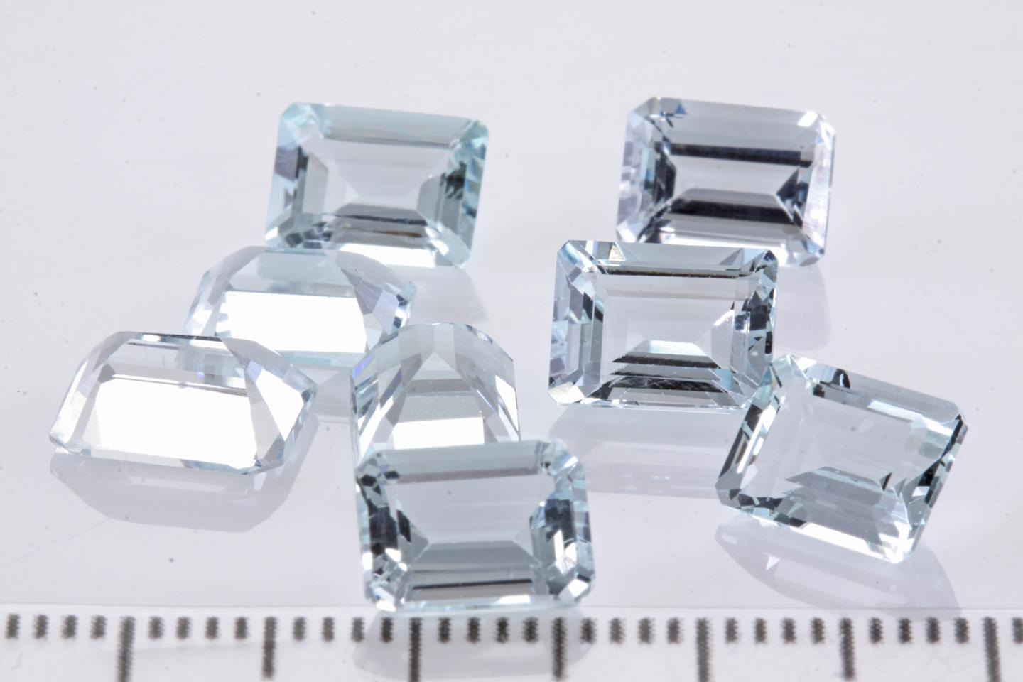 A loose parcel of 8 emerald cut Aquamarines totalling 12.36cts. Approximate size 8mm x 6mm. (New)