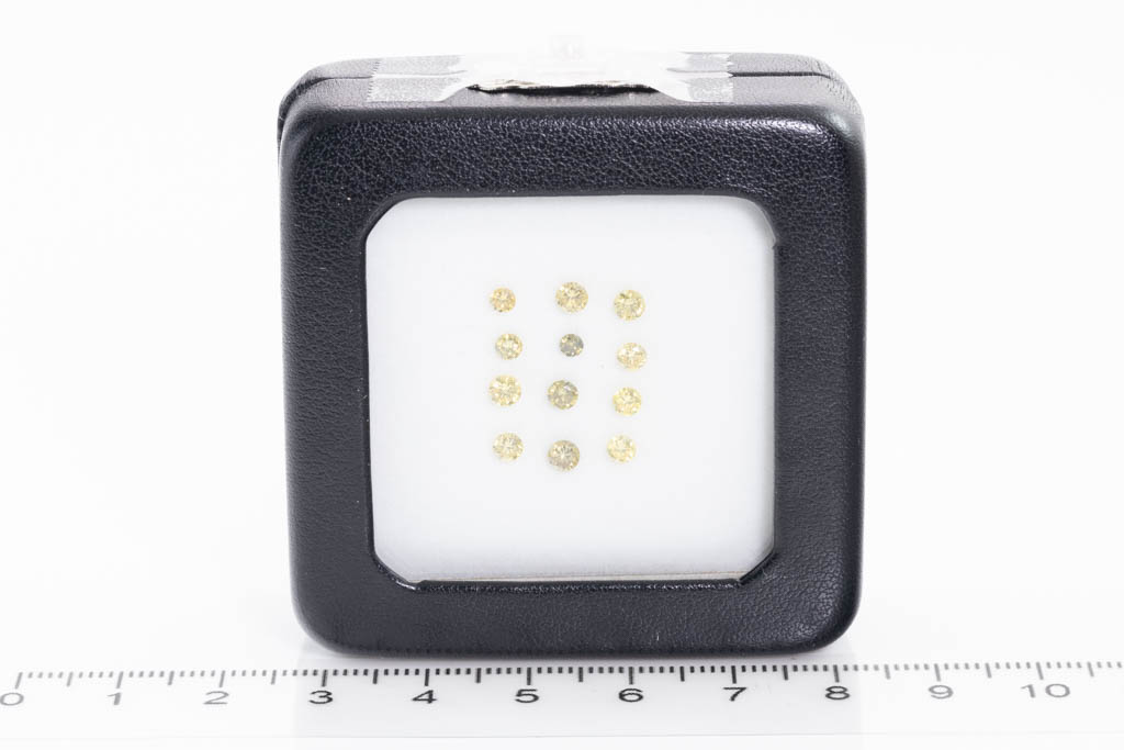 A parcel of loose round fancy colour Diamonds totalling 1.23cts (FSA estimated grading: Fancy light yellow - Fancy yellowish Green P1-P2). Size: 3.1mm-2.3mm. (New)