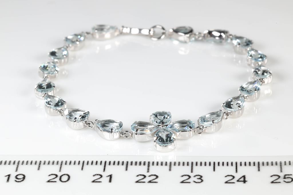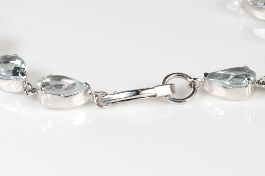 Aquamarine bracelet with pear shape Aquamarines totalling 12.46cts. Platinum. Length: 19cm. Weight: 6.6g. (Pre-owned)